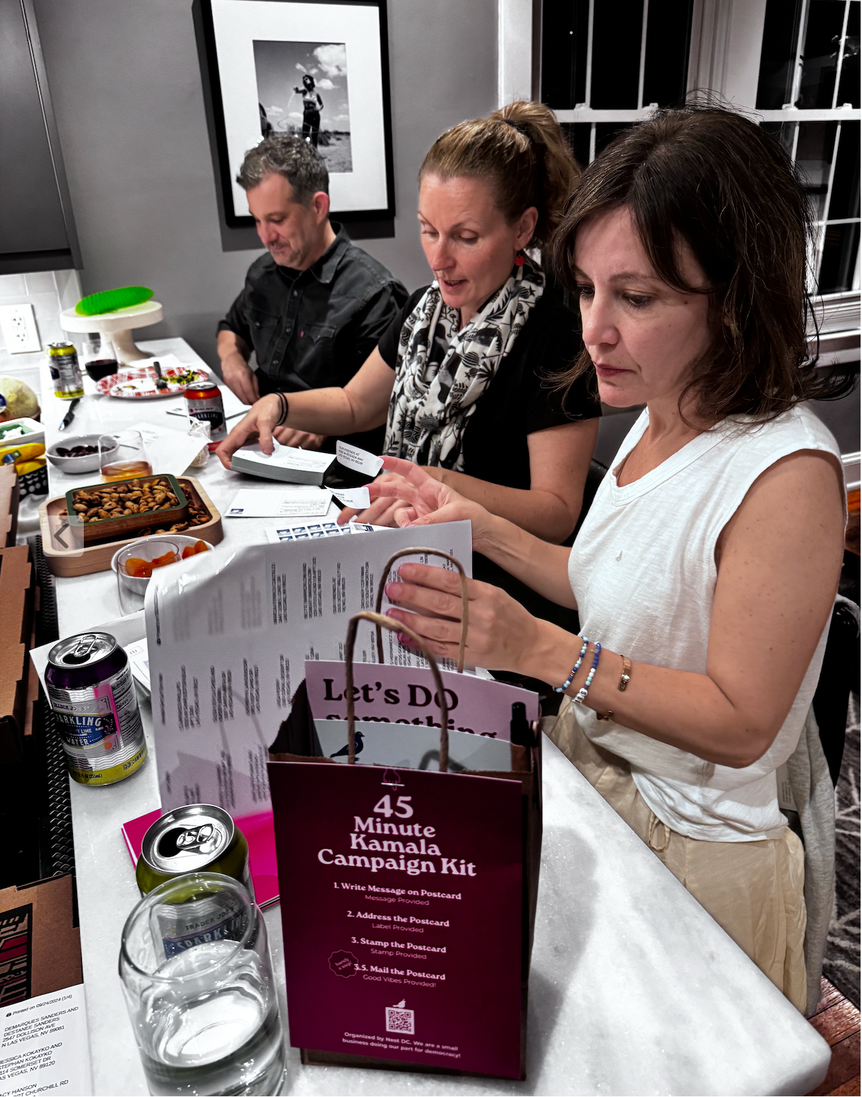 Our campaign kits help us reach voters with postcards.  We package the postcard, give volunteers addresses, and stamps.   Each volunteer kit takes about 30 - 45 minutes - and they are