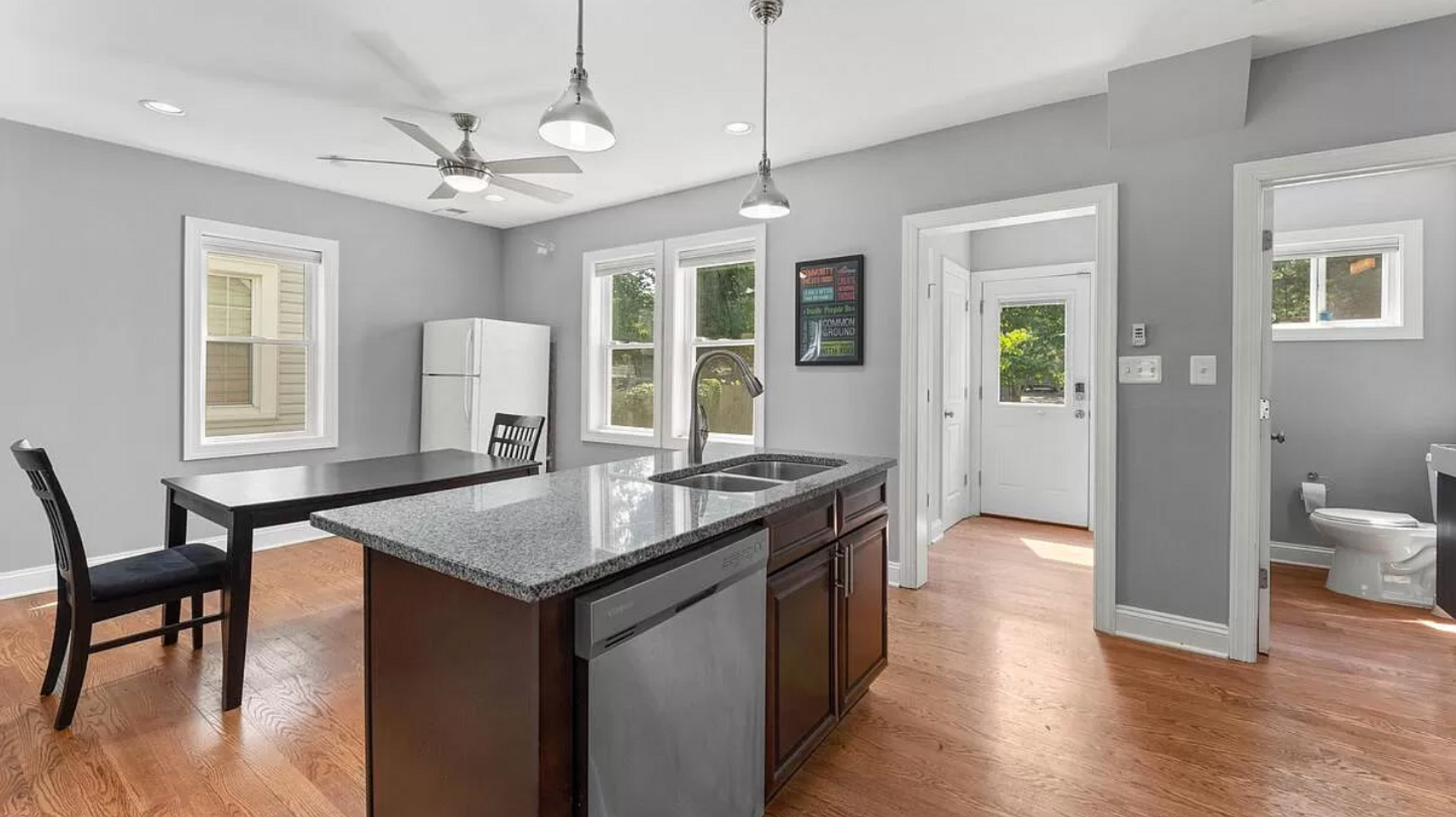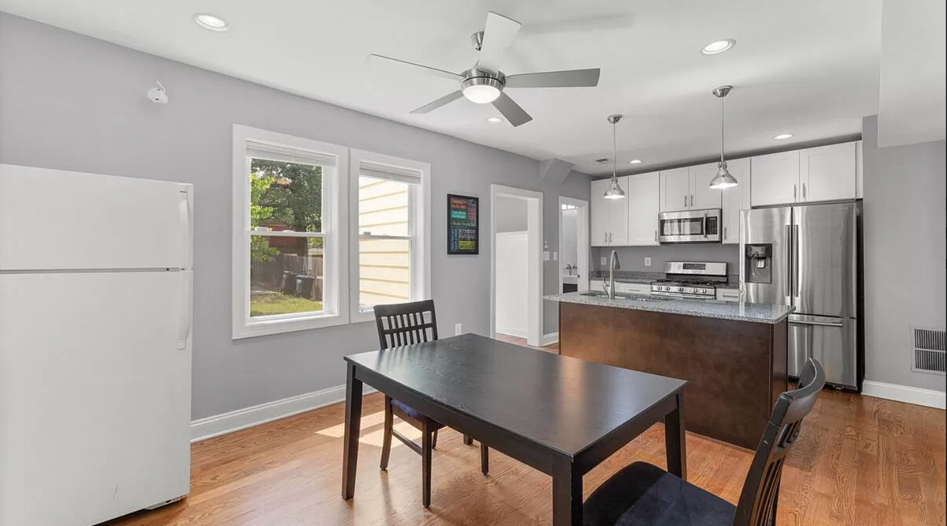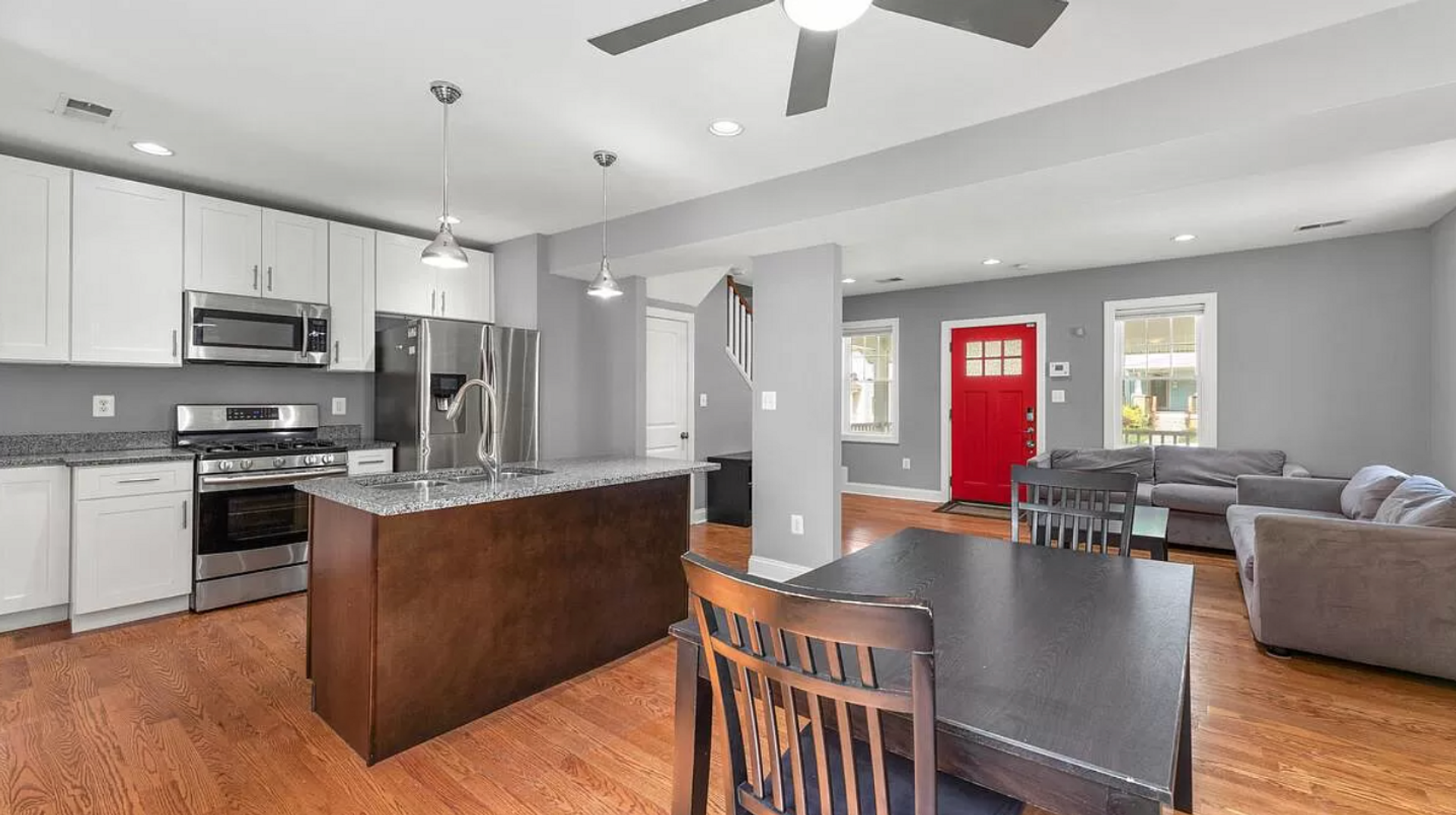This home is exactly what you imagine when you think of a charming abode! Recently renovated and one of the few homes nearby rebuilt from the ground up, this home welcomes you with its adorable white picket fence and large front porch. As you enter into the space, you are greeted with flooding natural light and gleaming hardwood floors! The open layout between the modern kitchen and the spacious living area is ideal for entertaining, and you and your guests can make your way out to the large backyard via the back door through the kitchen--perfect for cookouts this spring and summer! This home is perfectly equipped with 4 large bedrooms, 3 full bathrooms plus an extra half bath, and a private parking space. Truly a rare gem!