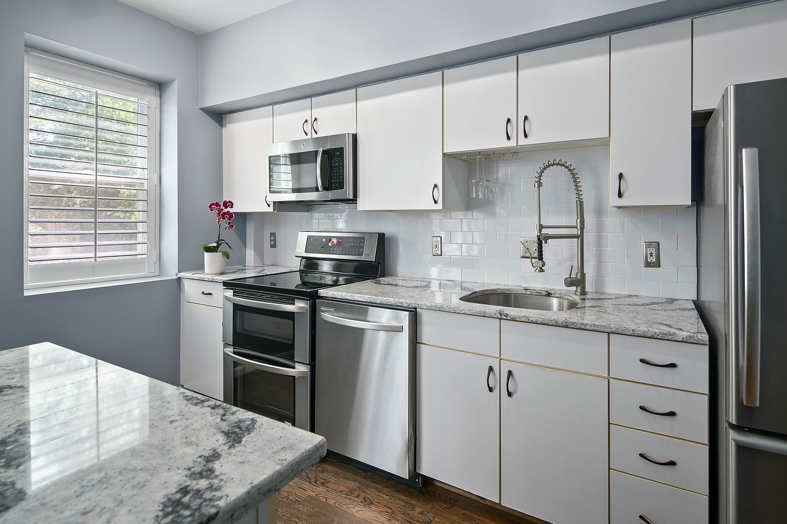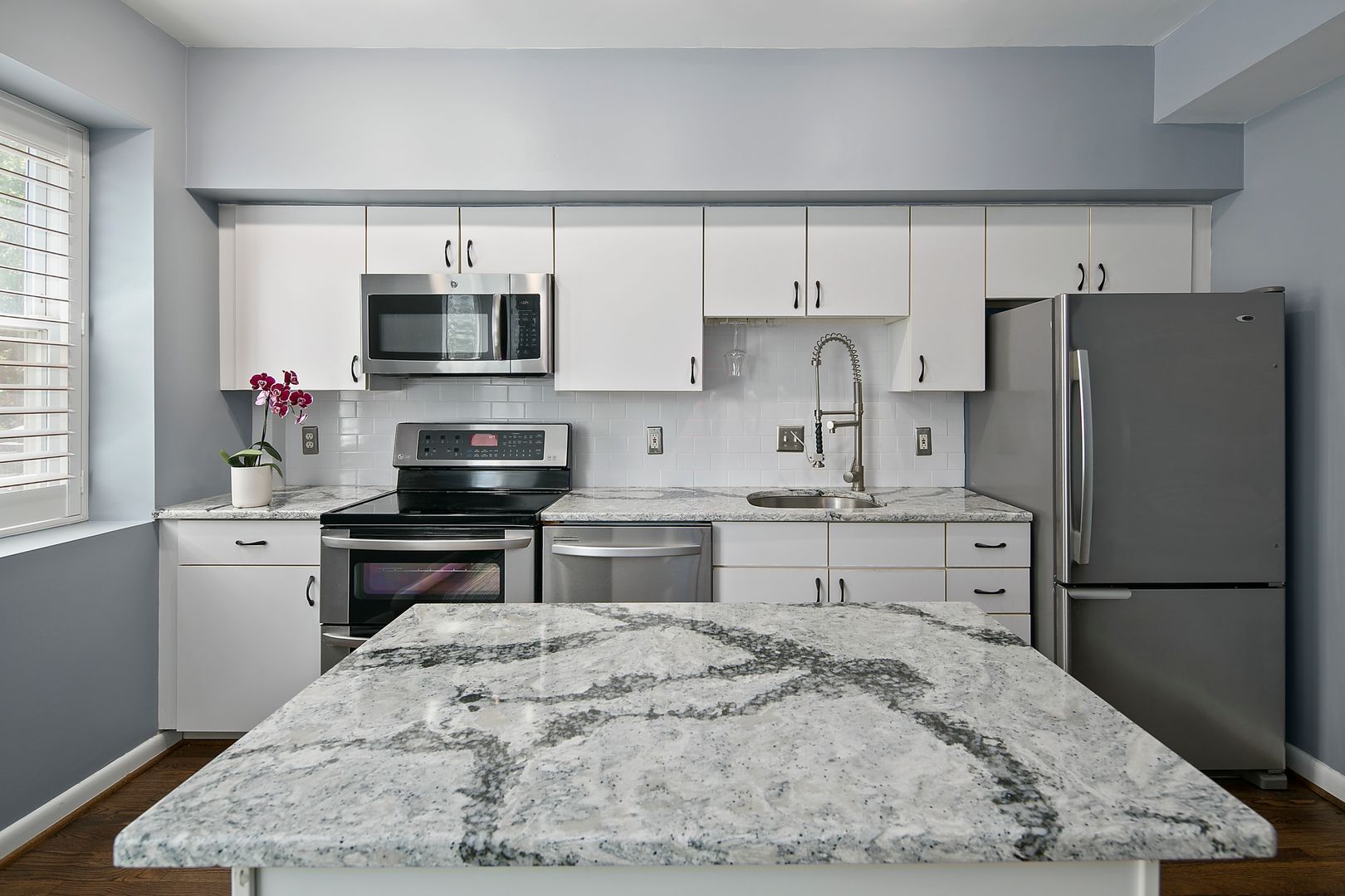 Gourmet Kitchen: The fully updated kitchen features sleek quartz countertops, premium stainless-steel appliances, abundant cabinet storage, and a beautiful island, making entertaining effortless.