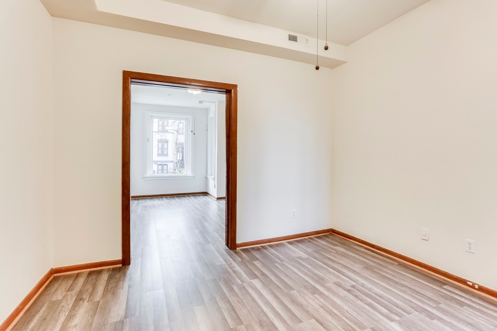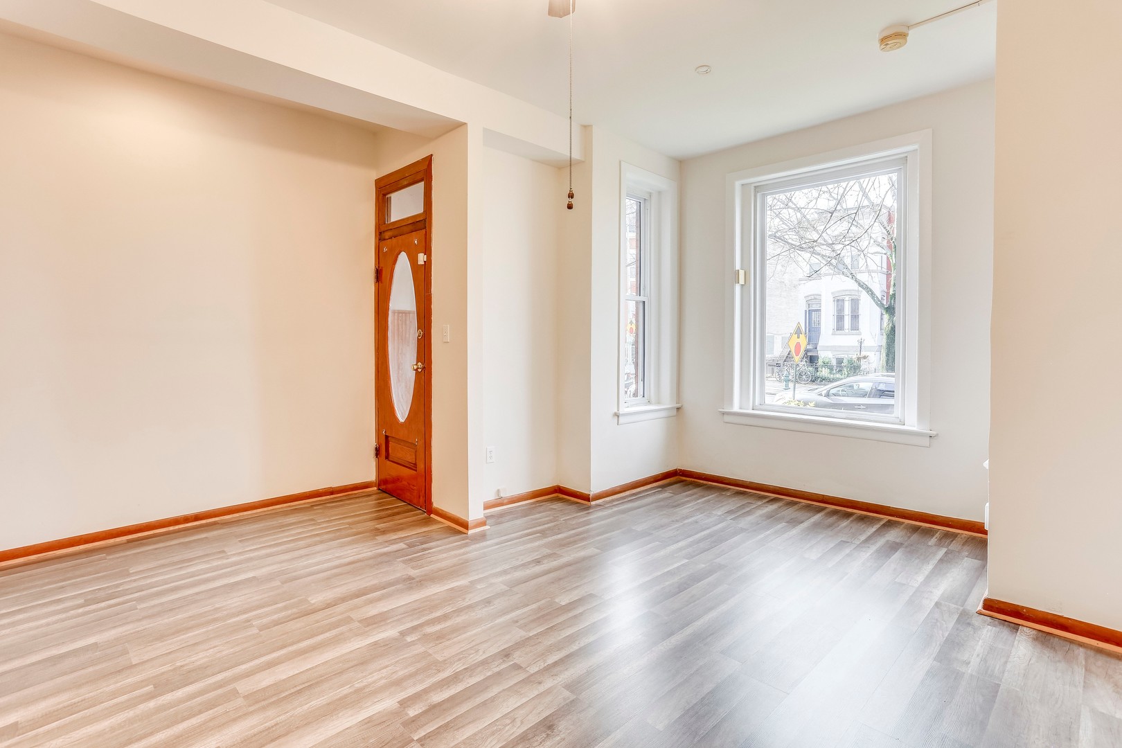 This charming two bedroom, one bath condo is located on Capitol Hill, just a short walk to Union Station, Stanton Park, and the H Street Corridor! Newly updated first-floor condo features an open living area accented by a gorgeous bay window, recessed lighting, and brand new flooring throughout. The two bright bedrooms both are spacious enough for a queen bed. The kitchen is found at the rear of the unit offering tons of cabinet space and updated countertops. The aspiring chef will love cooking while your guests sit at the deep breakfast bar awaiting the meal! An in-unit washer/dryer and central heat/AC round out the space and ensure you'll be living in comfort! When you want to head outside, there is an adorable private deck space perfect for starting the day with your morning coffee or ending with a glass of wine.