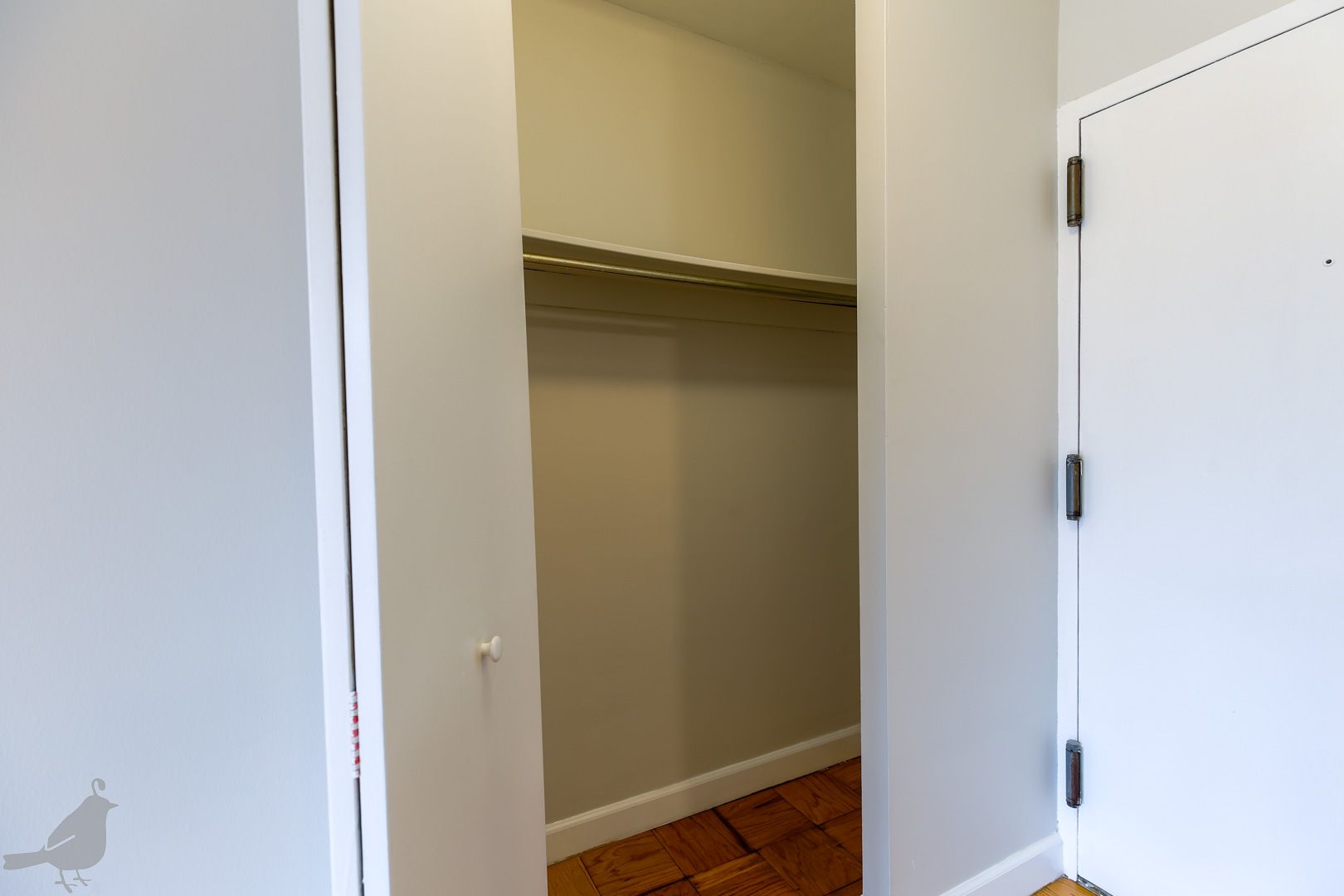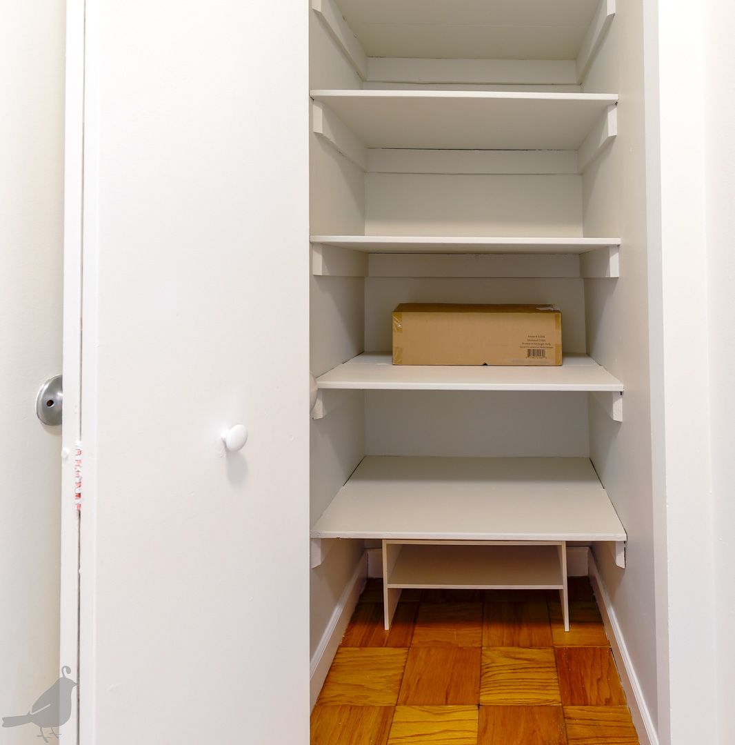 The home also offers a well-sized full bathroom with beautiful built-in storage. The bedroom is generously sized and features a custom built-in closet with a window, adding both character and functionality. Laundry is conveniently located just next door to the unit.
