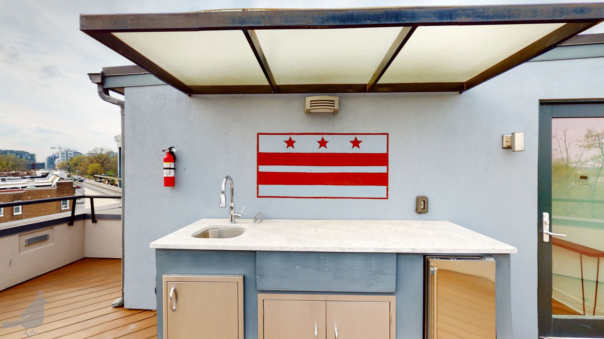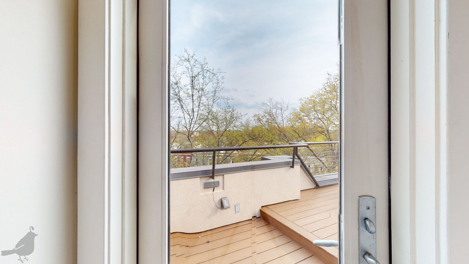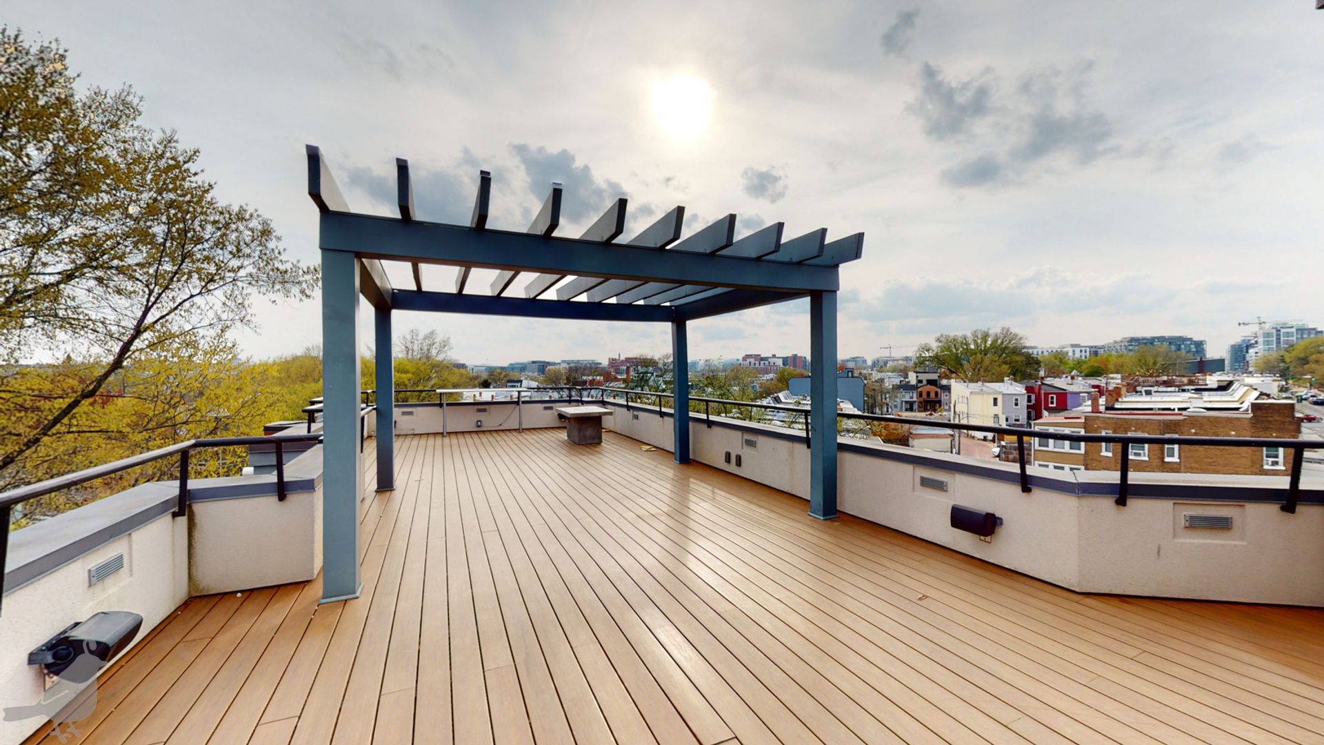On the top level of the home is an incredible private terrace! This spacious rooftop deck offers lively cityscape views and is the perfect space for dining al fresco or entertaining friends.