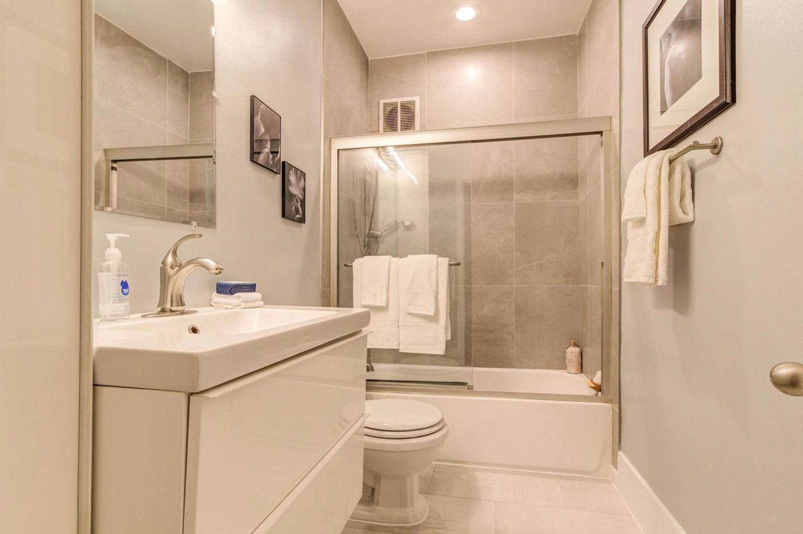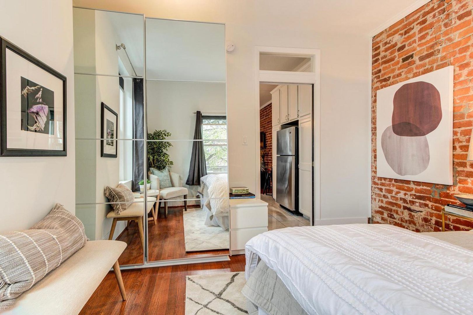 Passing the kitchen, you'll find a spacious bedroom with a mirror door closet and great natural light. With enough room for a queen-sized bed, it is a great space to relax. The closet offers tons of storage and the spa-like bathroom adds a convenient touch to your morning routine. A washer & dryer in the common laundry in the building makes laundry day a breeze! There is also storage space available through the building for extra storage.