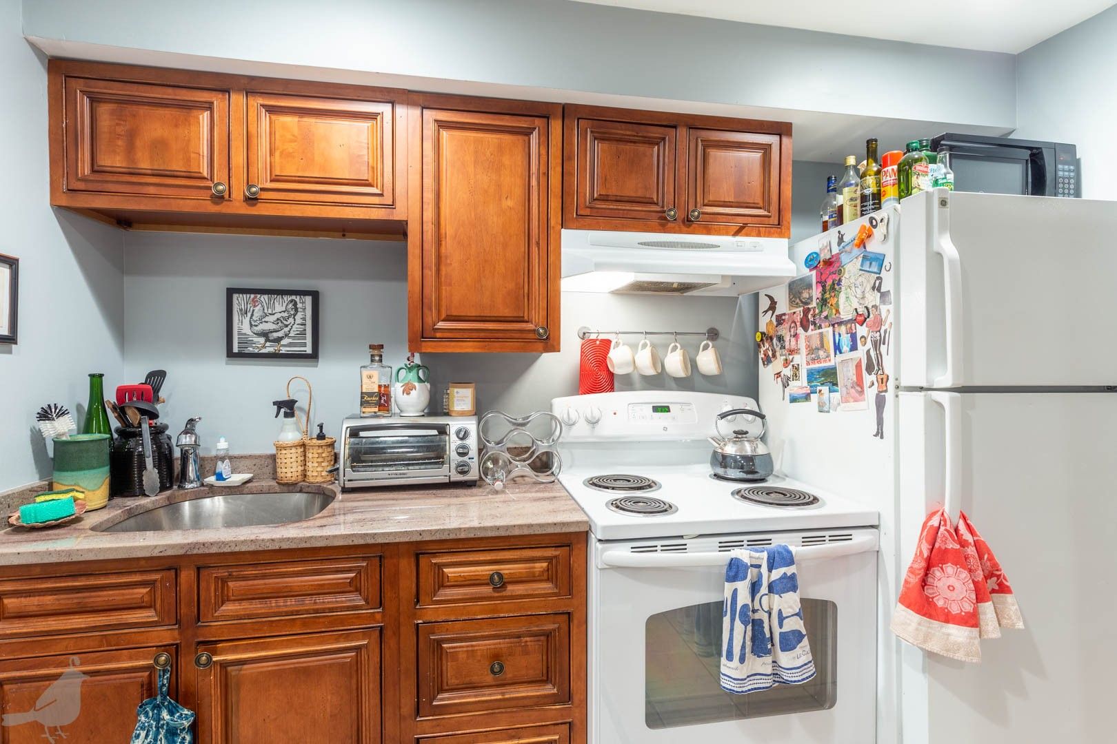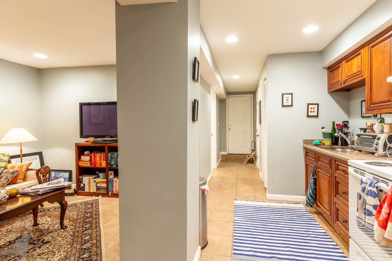 You are going to love this two-bedroom, one-bathroom English basement in a great and convenient location! Enter to find yourself in a bright, open, and spacious living area, with plenty of room for a couch and TV. Connected to the living area is the kitchen, filled with wood cabinets for all your cooking and dining items, plus the beautiful colors gives the space warmth and the tile flooring throughout ties the space nicely together.