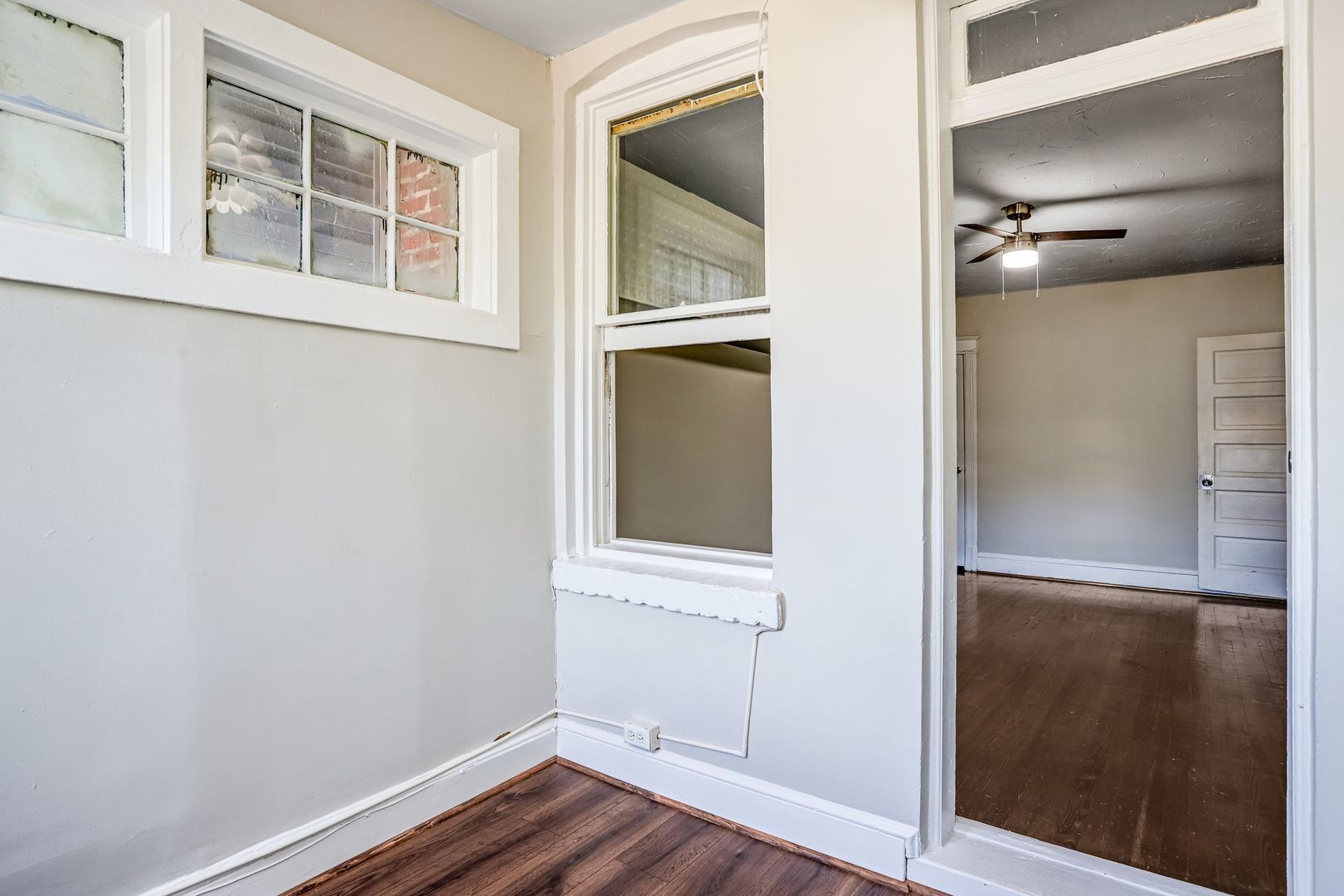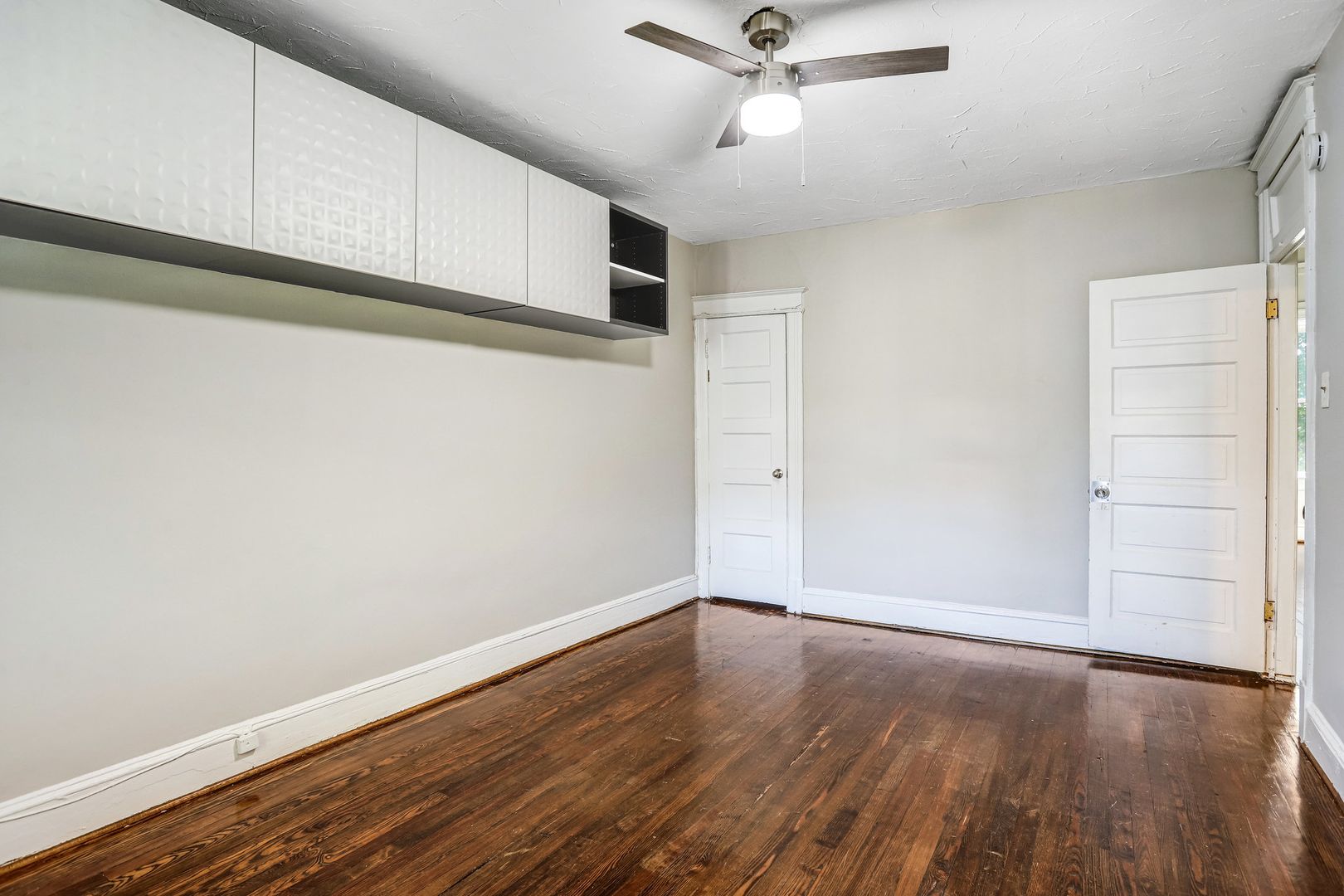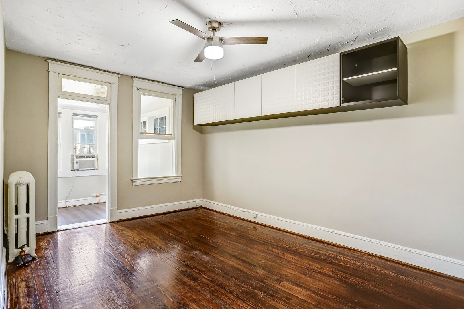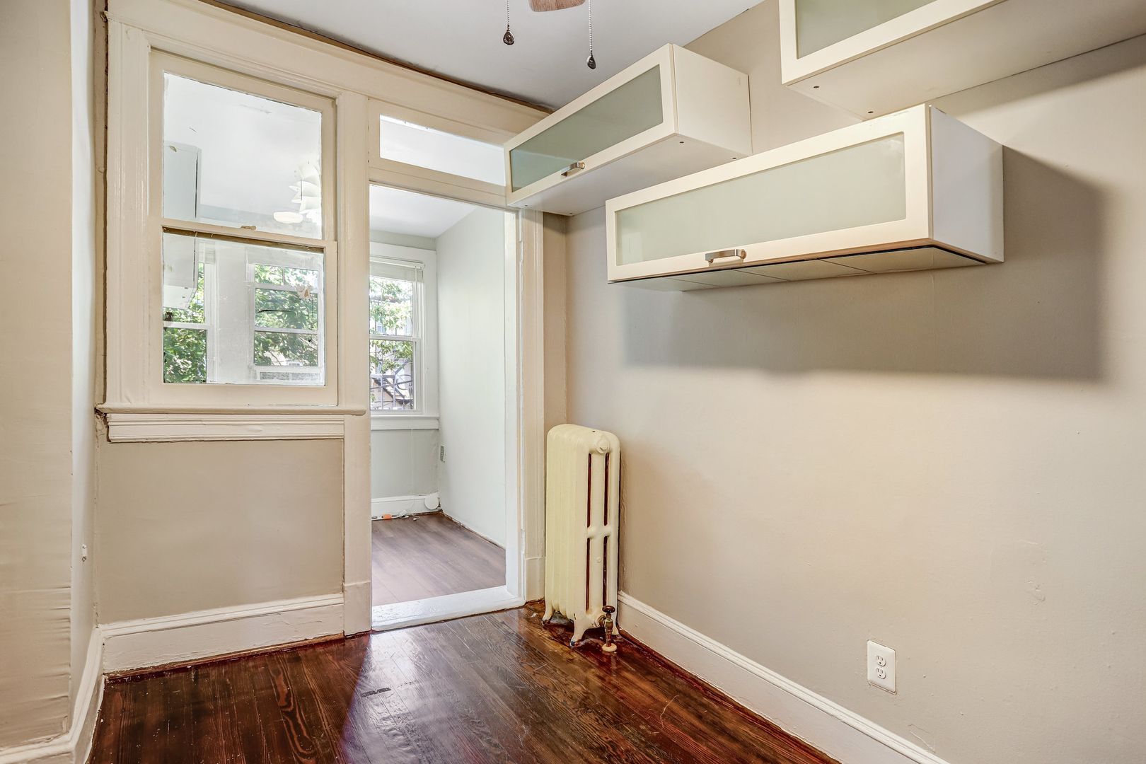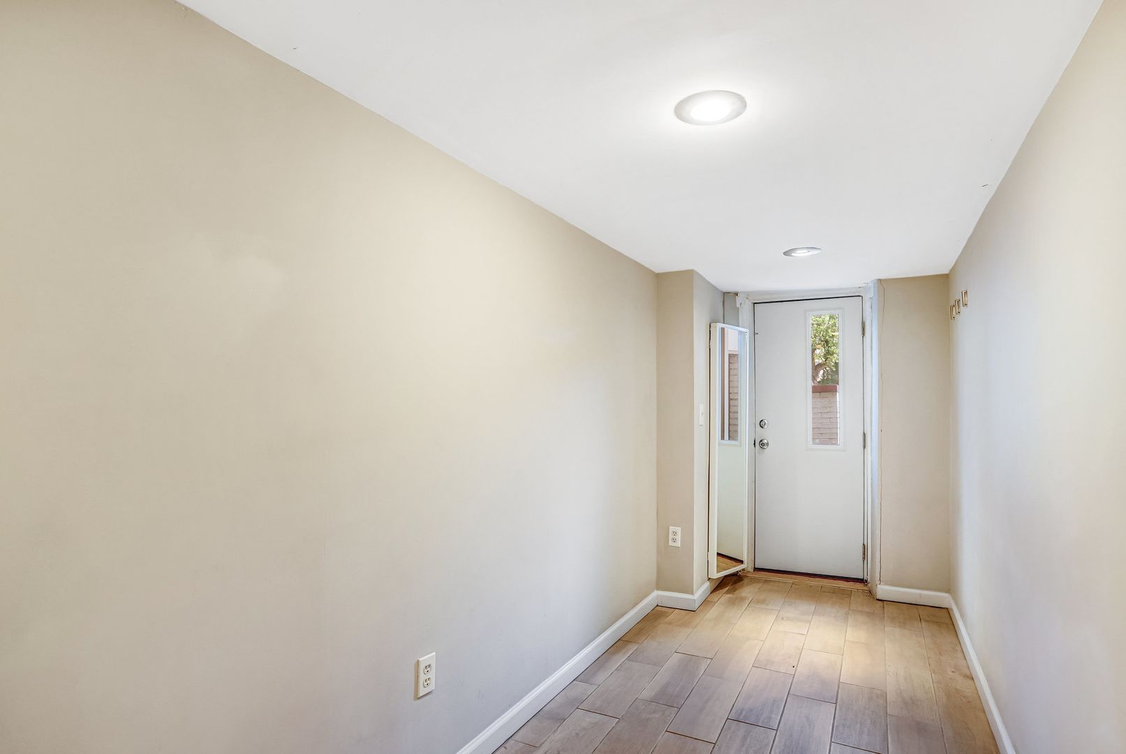 Outdoor convenience includes off-street parking behind the house (officially one space, but can accommodate two compact vehicles). Trash and recycling are located at the back of the home.