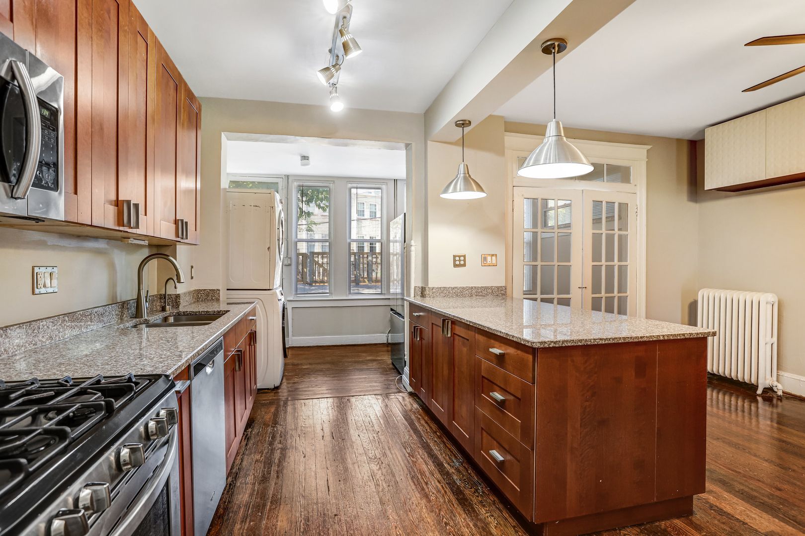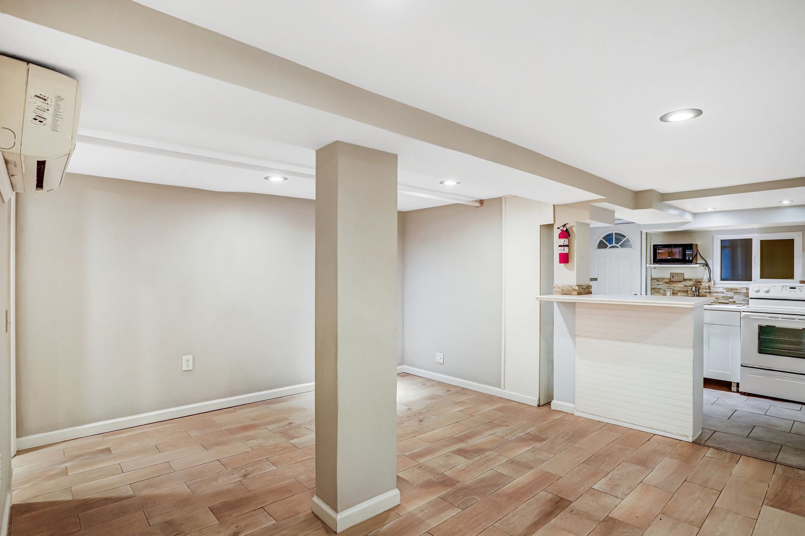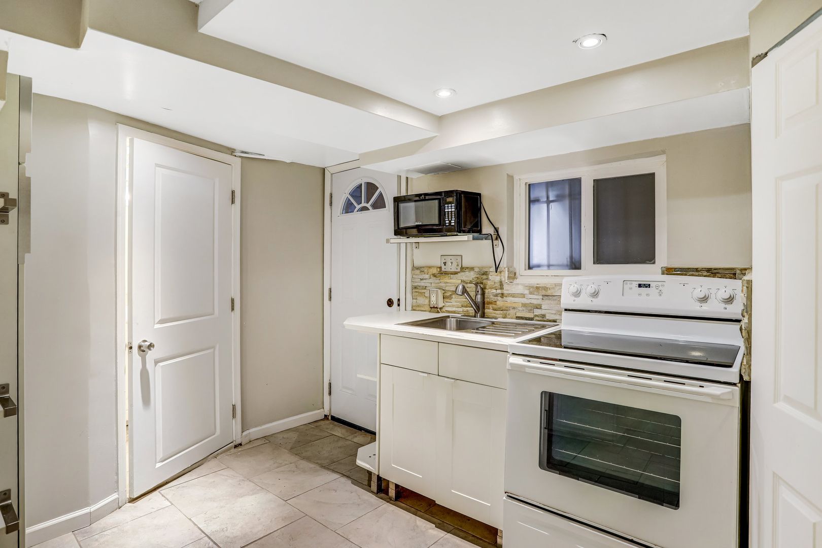 The home features a functional layout with in-unit washer and dryer, a well-equipped kitchen with gas stove, oven, microwave, dishwasher, and refrigerator, and additional flexibility with a finished basement, which includes its own refrigerator and stove/oven.