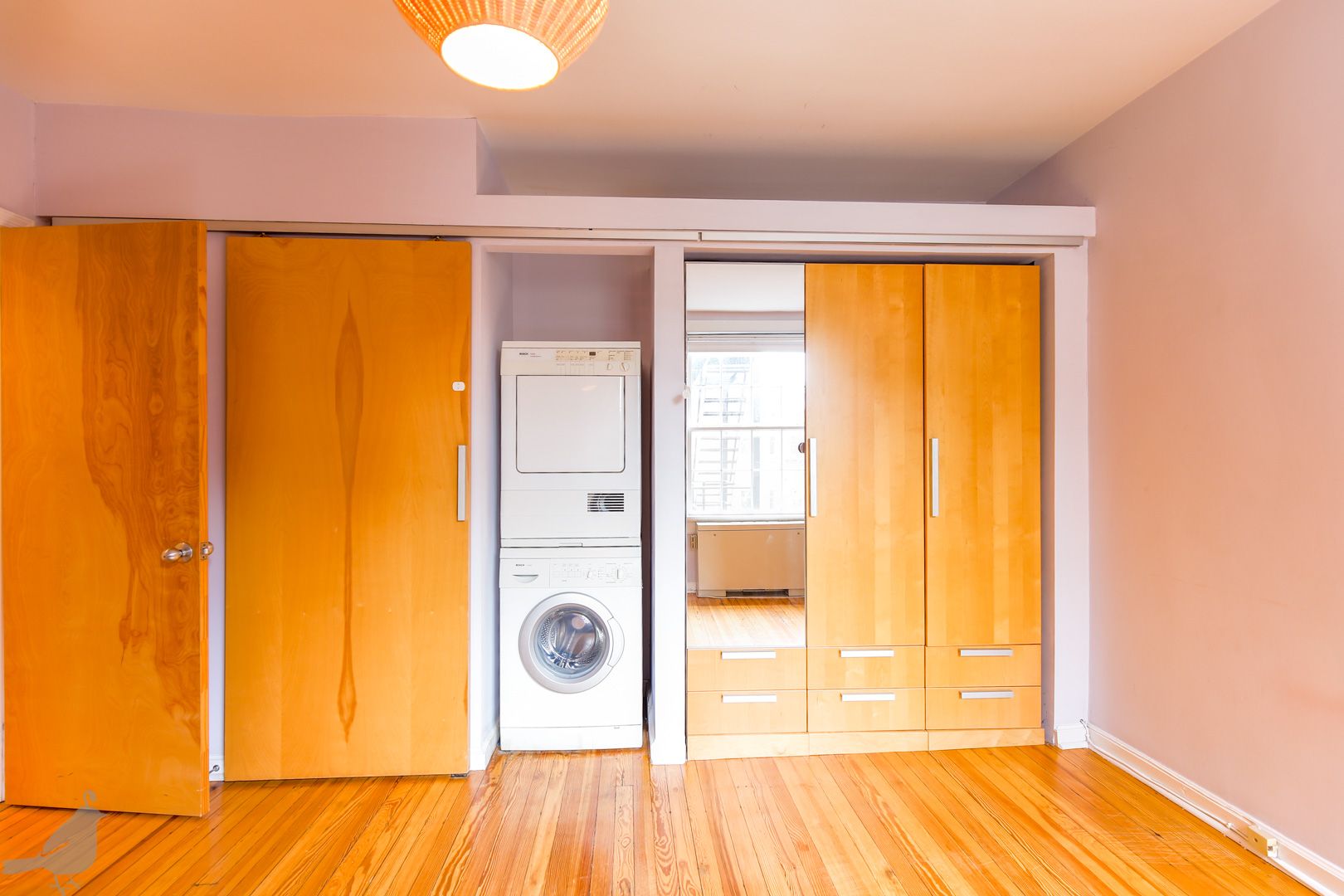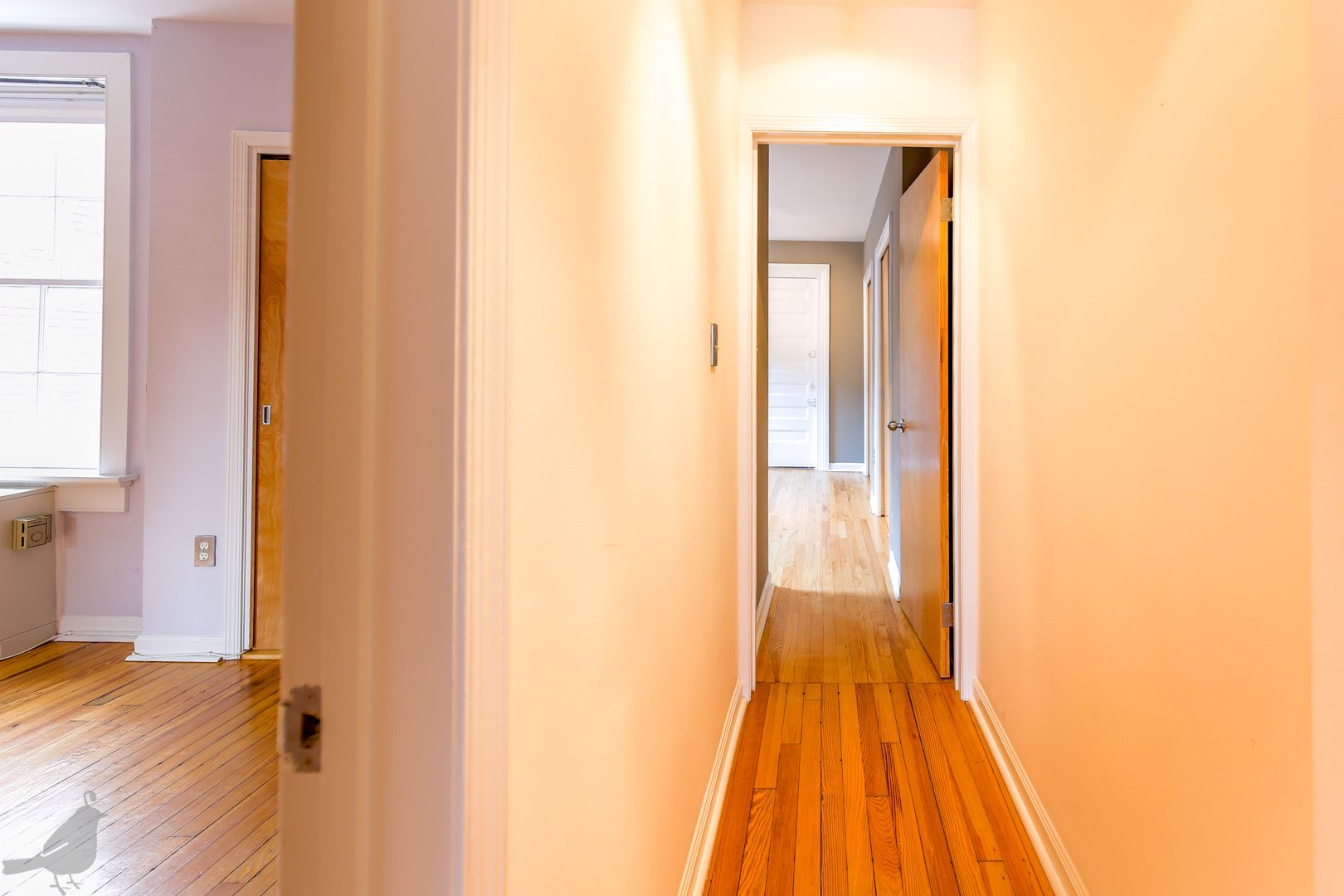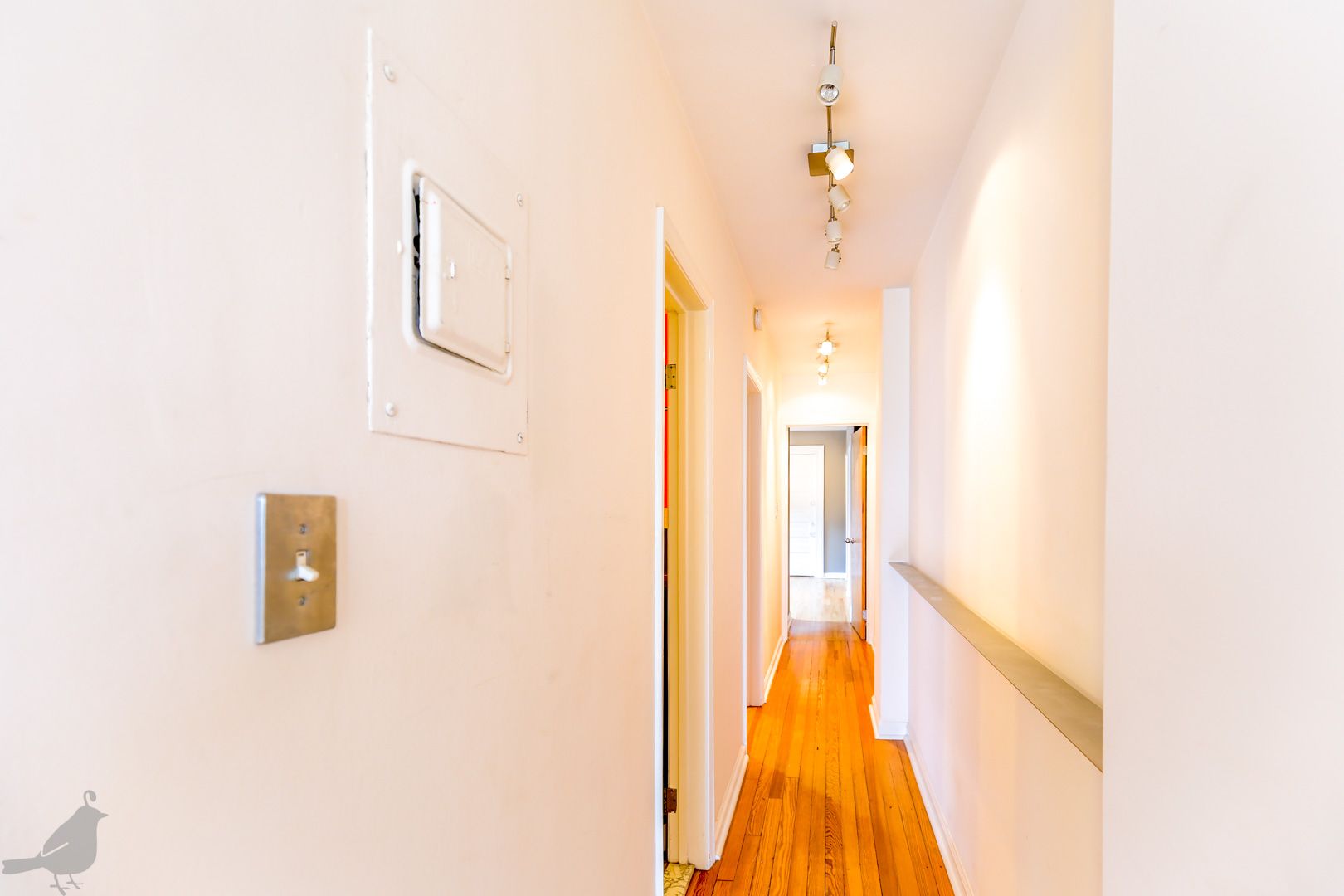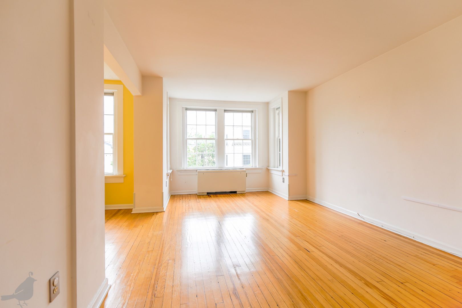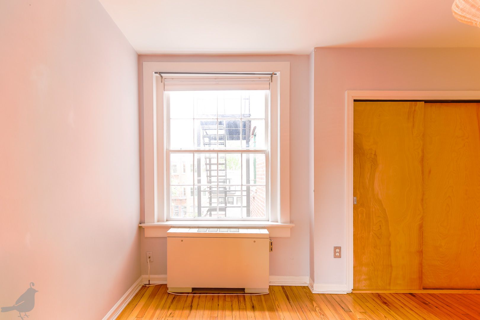 Ideally situated between Dupont Circle and U Street on the 3rd floor of a historic building, this sun-drenched two-bedroom condo cannot be beaten. The open living room and sunny dining room with custom light fixture are perfect for entertaining guests with great southern views. Hardwood floors, built-in shelves, and plentiful closet space abound. The kitchen has a built-in desk, concrete countertops, and stainless steel appliances. Down the long hallway, you'll find the two spacious bedrooms and classic hall bathroom with a fun pop of color. Rounding out this nest is the washer/dryer which is cleverly hidden behind a barn door in the first bedroom!