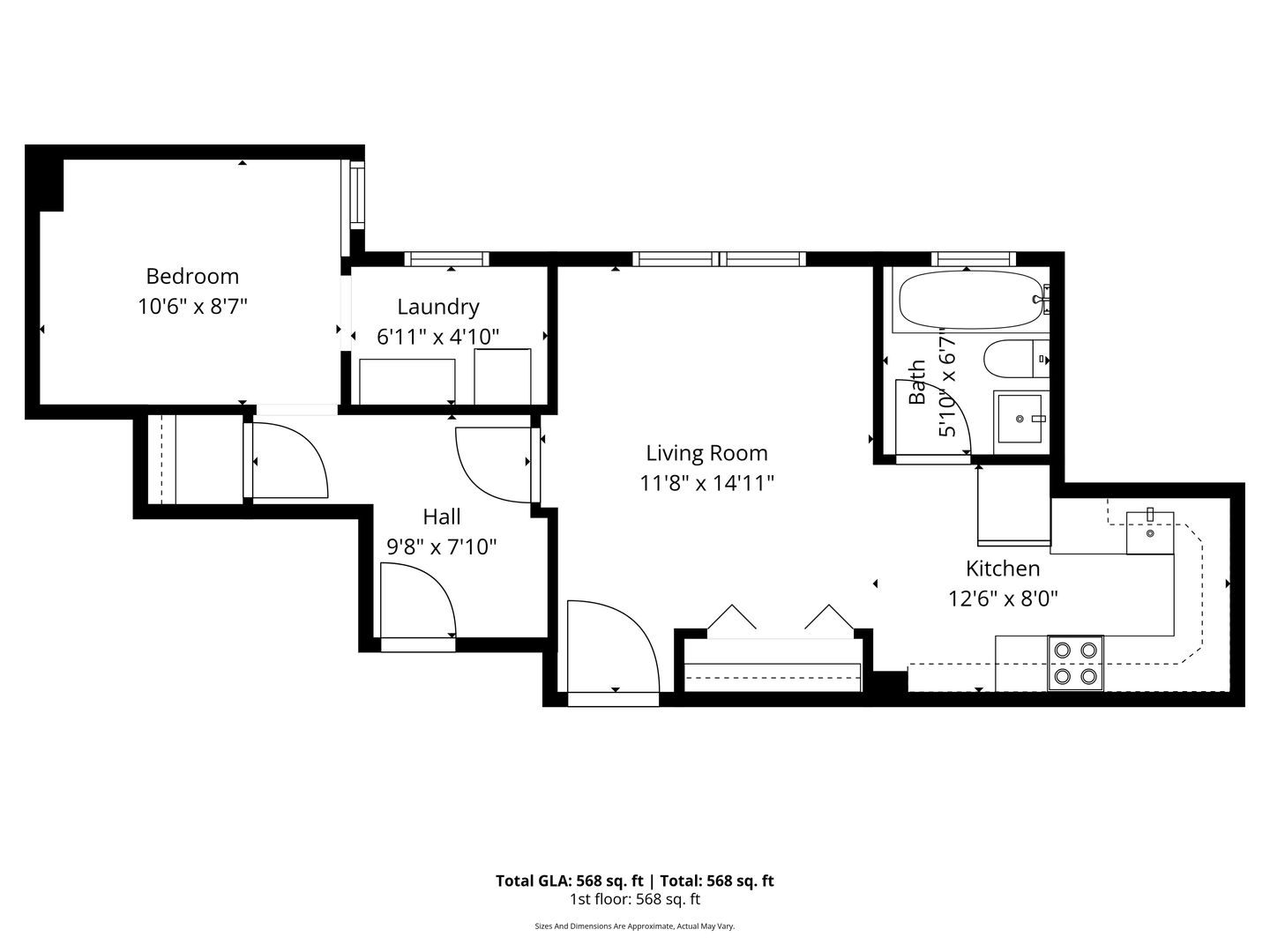 • 1 BR / 1 BA with 578 sq ft