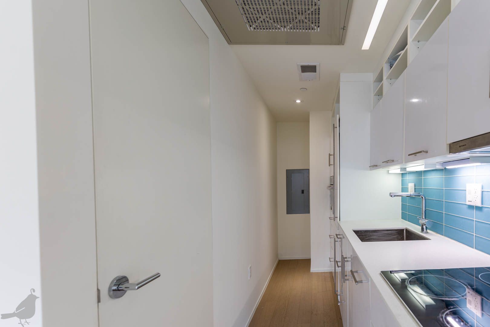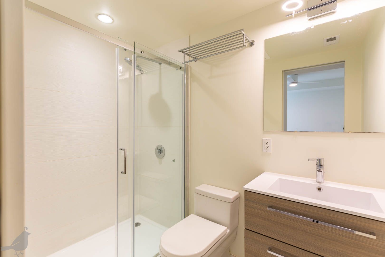 This adorable two-bedroom, two-bathroom condo at the Moda 17 features indoor/outdoor living in the heart of the city! Step into the open living and dining area, which features lovely hardwood floors and recessed lighting. The modern kitchen has a bright backsplash, stainless steel appliances, and lots of cabinet space. Both bathrooms are spa-like with floating vanities and glass-enclosed showers and there is a full-size washer and dryer. In addition, find your own reserved space on the building's rooftop deck- making this unit a true oasis in the city! Lastly, there are is one off-street parking space and one storage unit included with this lovely abode!