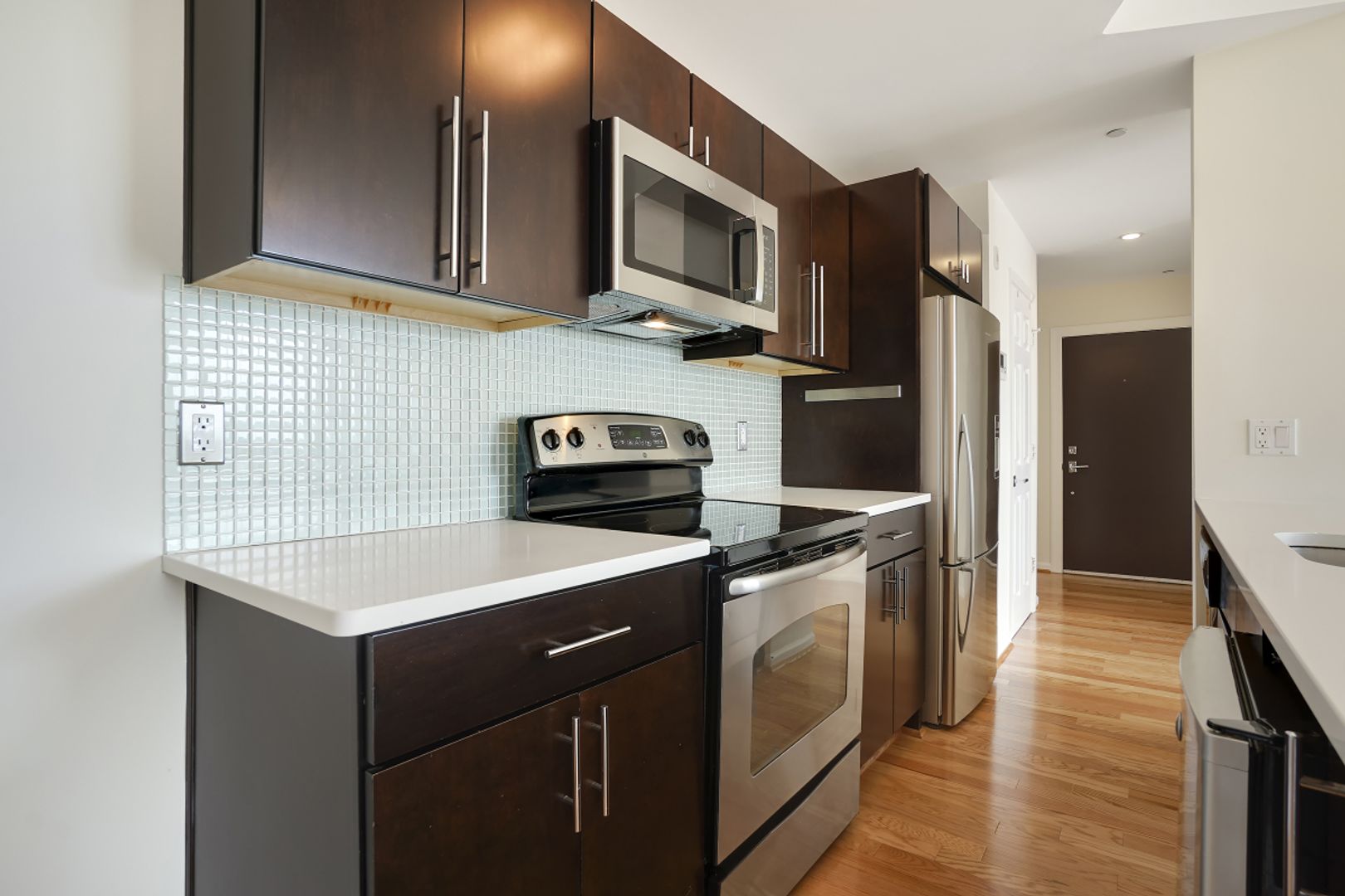 This chic and modern two-bedroom, two-bathroom unit with an open floor plan is nestled between Rhode Island Row and Bloomingdale! This unit is in a boutique building called The Mind: a gorgeous condo boutique with a rooftop deck and a rooftop fitness room with views for you to enjoy a great time. You'll enter the spacious, bright, and open living/kitchen area and be greeted by abundant natural light and gleaming hardwood floors. This kitchen has everything: white countertops, stainless steel appliances, such as; refrigerator, electric stove, oven, microwave, and dishwasher. Both bedrooms each have en-suite bathrooms that feature beige tile and nice fixtures. The bedrooms are on opposite sides of the condo with the open living area in between. The in-unit laundry rounds out this perfect nest!