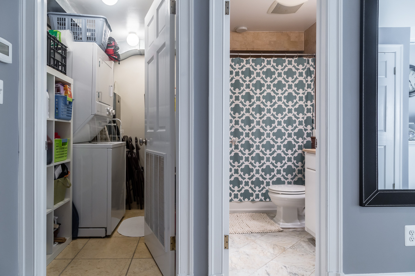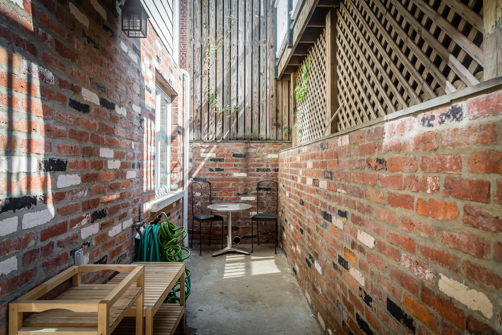 This unit features two private entrances and access to a shared backyard with the upstairs residence. A private patio provides a great outdoor space to relax or enjoy fresh air.