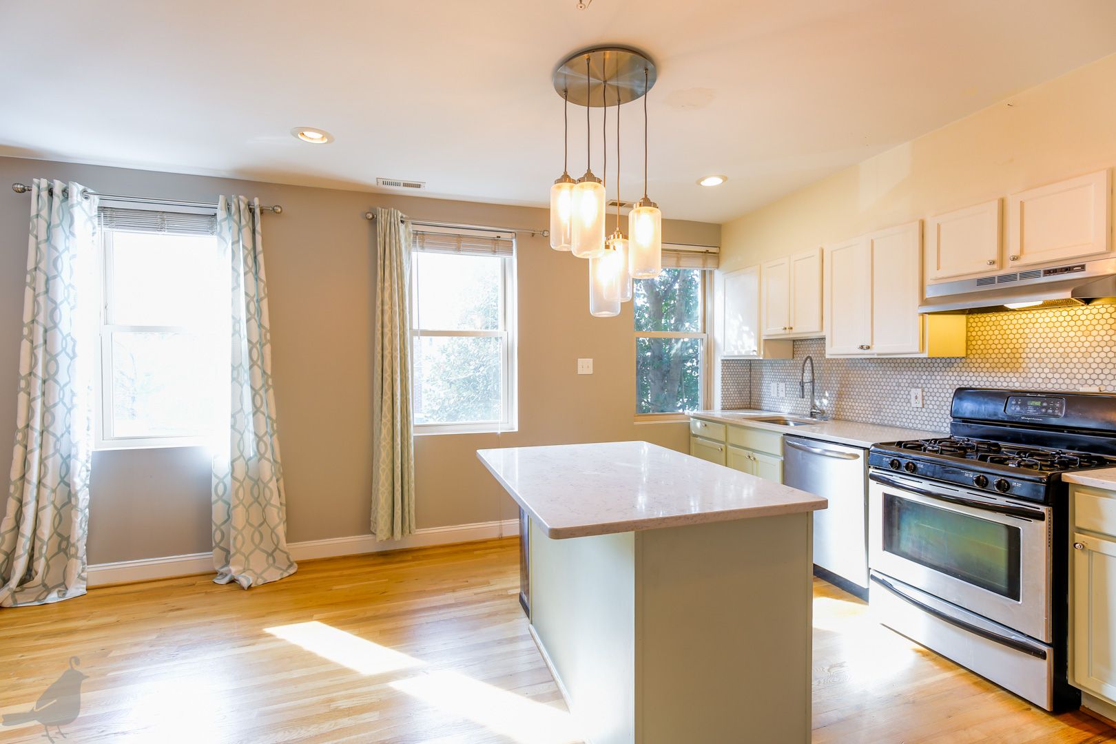 This lovely two level condo in Kingman Park is spread out over 1200 square feet! Upon entering the home, you'll find a light-filled living room with gleaming hardwood floors. Off the main living room there is plenty of space to designate a dining area. The open kitchen was thoughtfully designed and includes features such as stainless steel appliances, gas range, marble countertops, and an island breakfast bar. A convenient half bathroom on the first level makes the main living space the ideal place to host all of your guests.