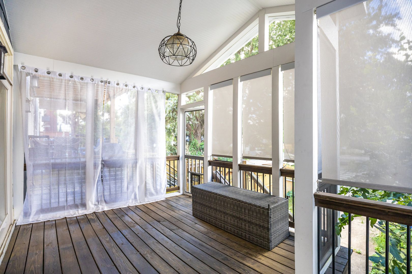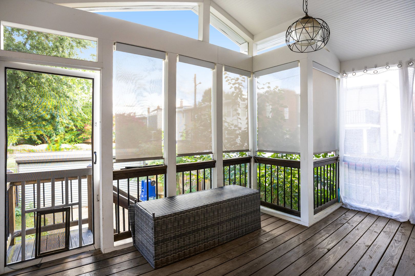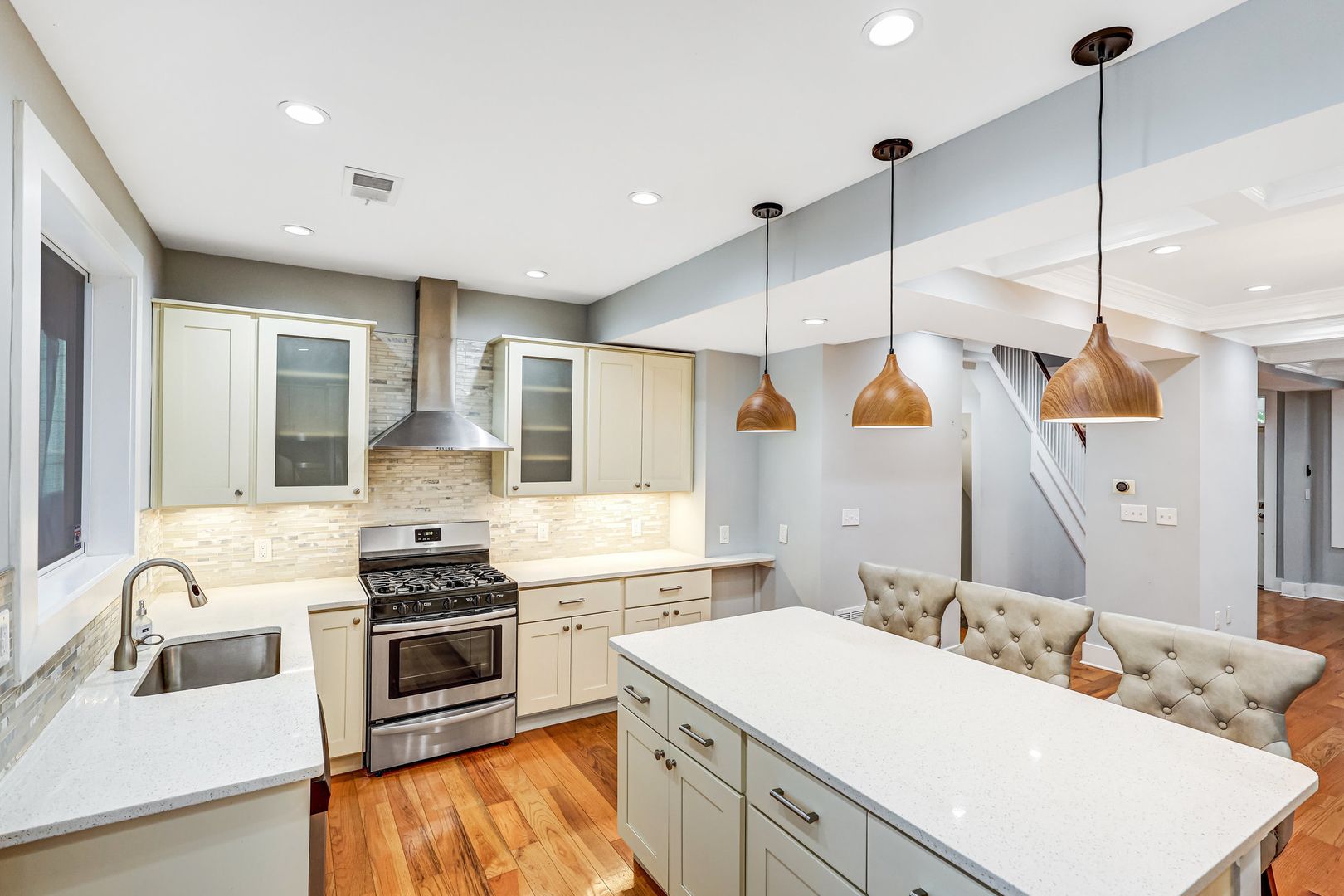 Pass the front yard and porch to enter the home. You will be greeted by a spacious living area with gleaming hardwood floors, which continue throughout the main floor. The kitchen features an amazing island for abundant counter space and plenty of cabinets for storage. This great space is complete with stainless steel appliances, a gas stove, and modern overhead lighting, perfect for entertaining! Pass through the kitchen to find a lovely sunroom, perfect for your family room or home office. Exit the back door and you'll step out to your personal patio, perfect for enjoying evenings with friends. The powder room on this floor provides convenience to both you and your guests!