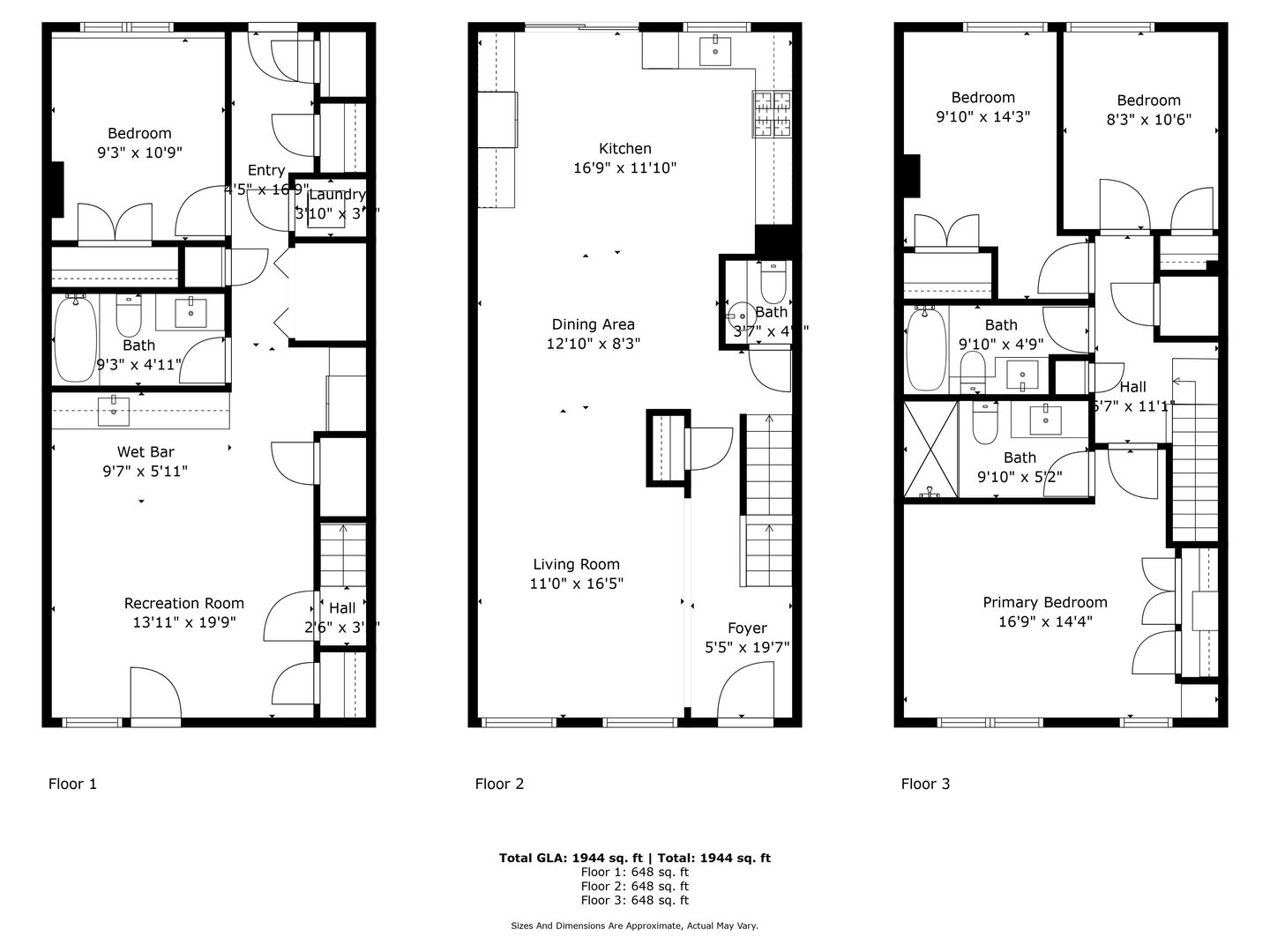 Head upstairs to the top floor, where three well-appointed bedrooms await. The main bedroom boasts large windows, a customized closet, and an ensuite bath. The second and third bedrooms are both spacious with great natural light and plenty of closet space. A second full bath completes the upper level. You will find your next washer and dryer on this level! Head down to the finished basement to find another bedroom, a full bathroom, a closet, a wet bar, and a washer/dryer combo. You will be wowed by every floor!