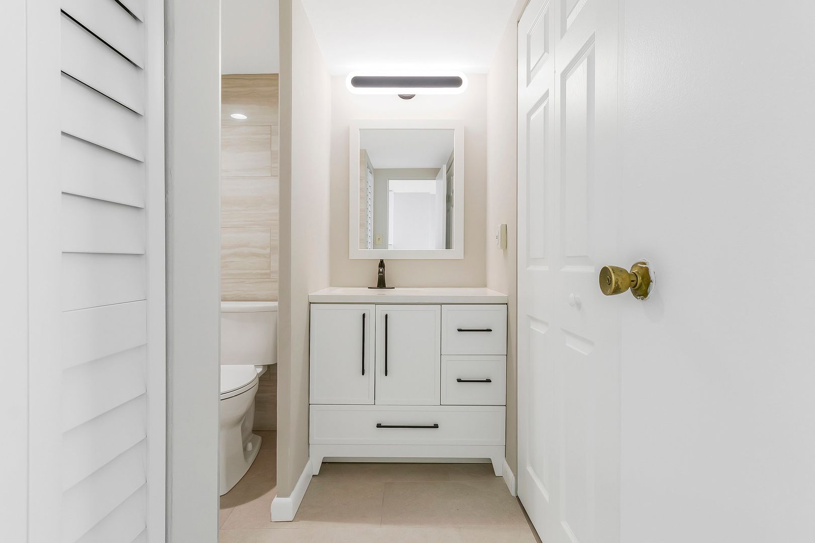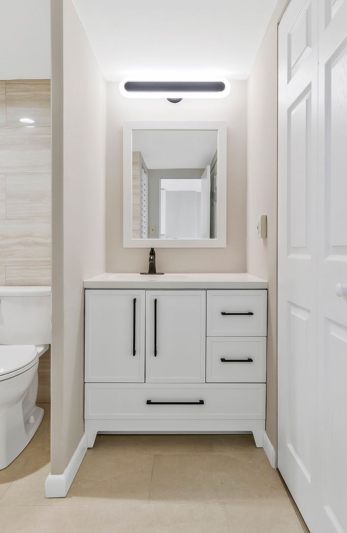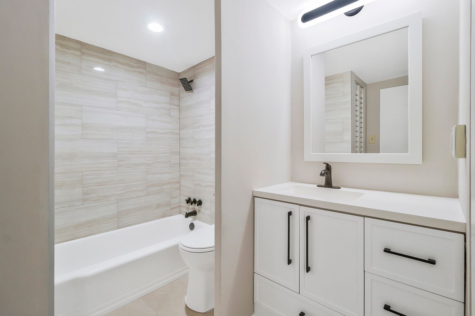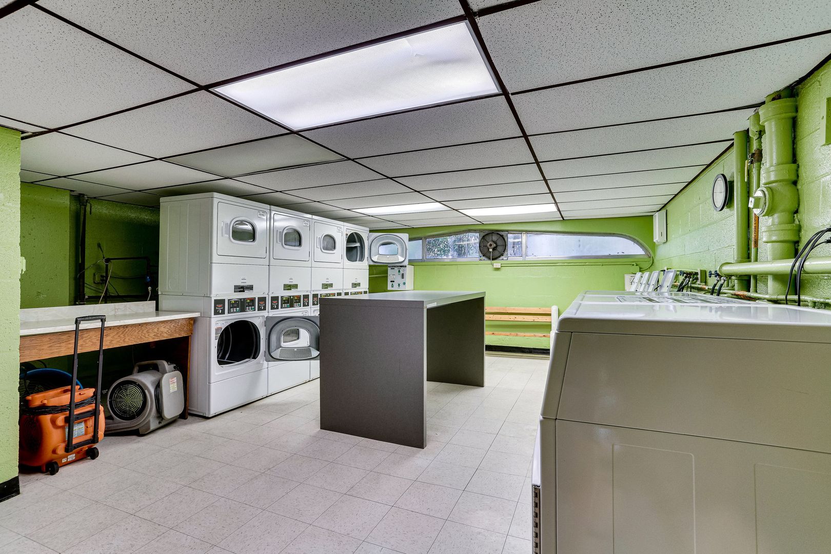 A spacious closet with built-in shelving leads to the bathroom, which includes a shower/tub combo. Residents also enjoy access to a building pool and a convenient laundry room on the first floor.