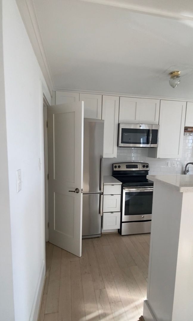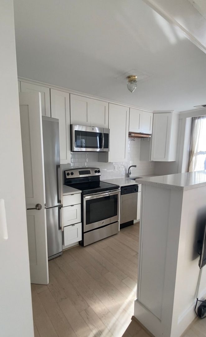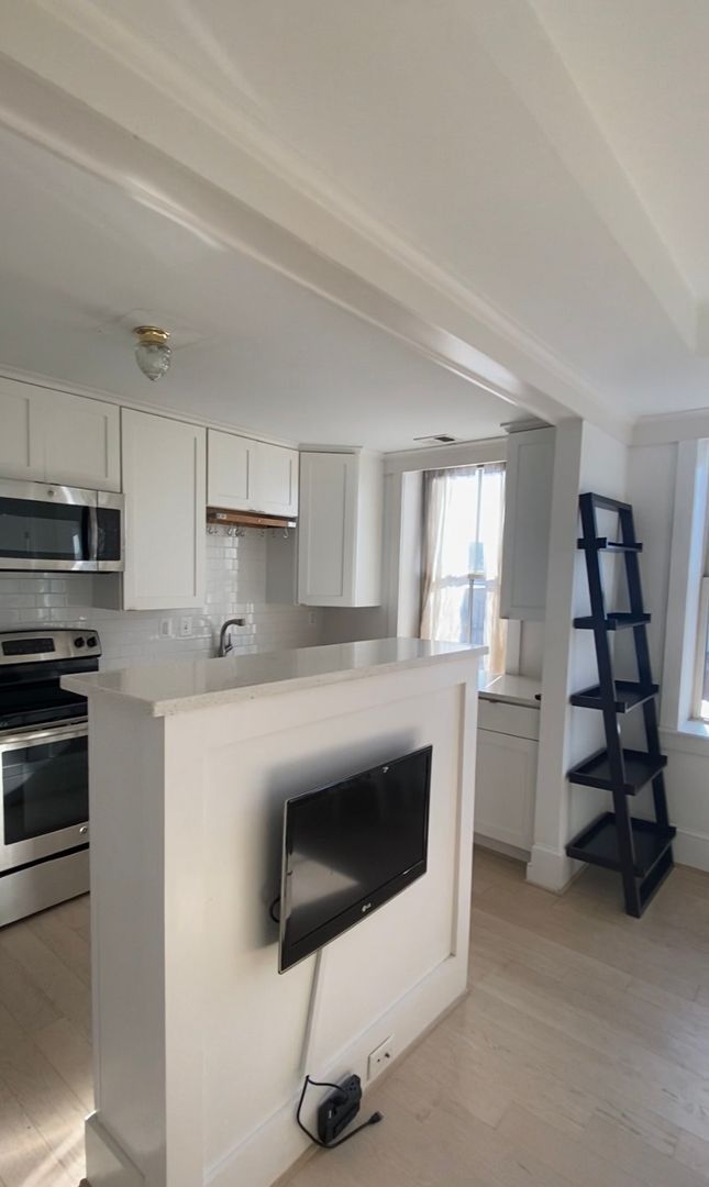 This comfortable modern furnished apartment home is the perfect place for you! It features a modern custom-built Murphy/wall bed with couch and under-bed storage, walk-in closet, large state-of-the-art kitchen with stainless steel appliances, large stove, glass-top cooking range, built-in microwave, huge fridge, large counter space, dishwasher, modern washer/dryer in unit, built-in modern bookcases tucked behind a beautiful cabinetry, hardwood floors, modern fixtures, wall-mount for a TV and three additional closets. This top-floor apartment overlooks Columbia Heights with four large windows and a southern exposure which lets in a ton of natural light to the apartment and gives you beautiful views of the sunset year round! This apartment is 367 sq ft. and it rents for just $1,575/month with a 12 month lease! Price does not include utilities.