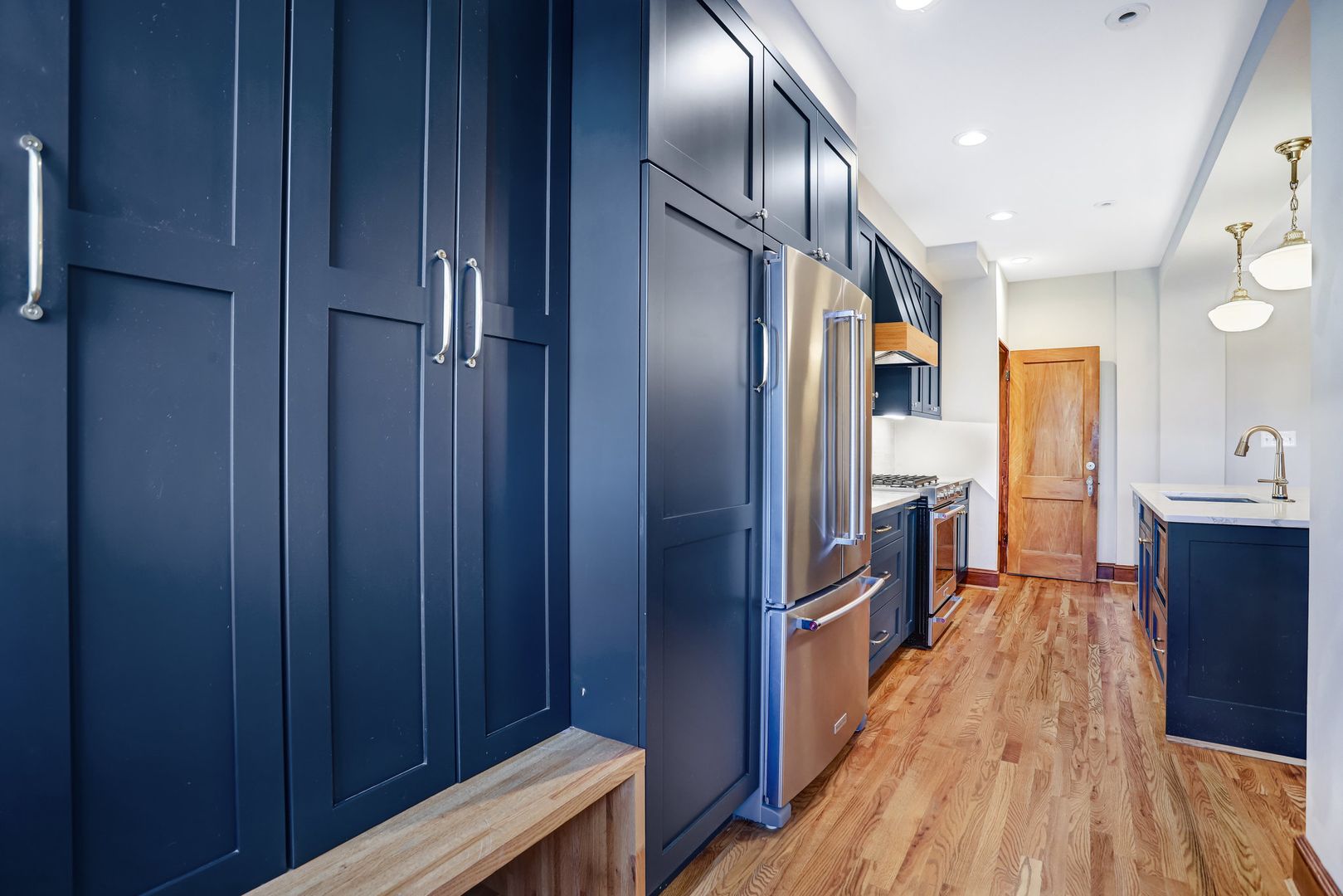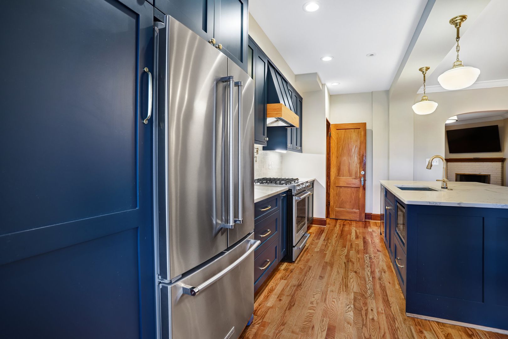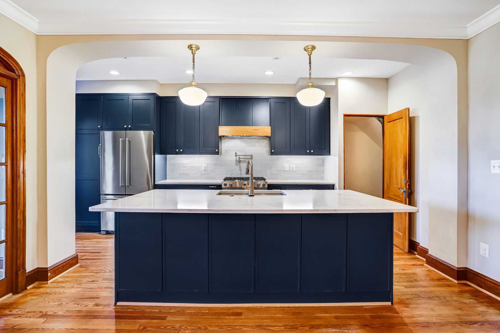 • Spacious kitchen with an island, ample cabinet storage, and stainless steel appliances