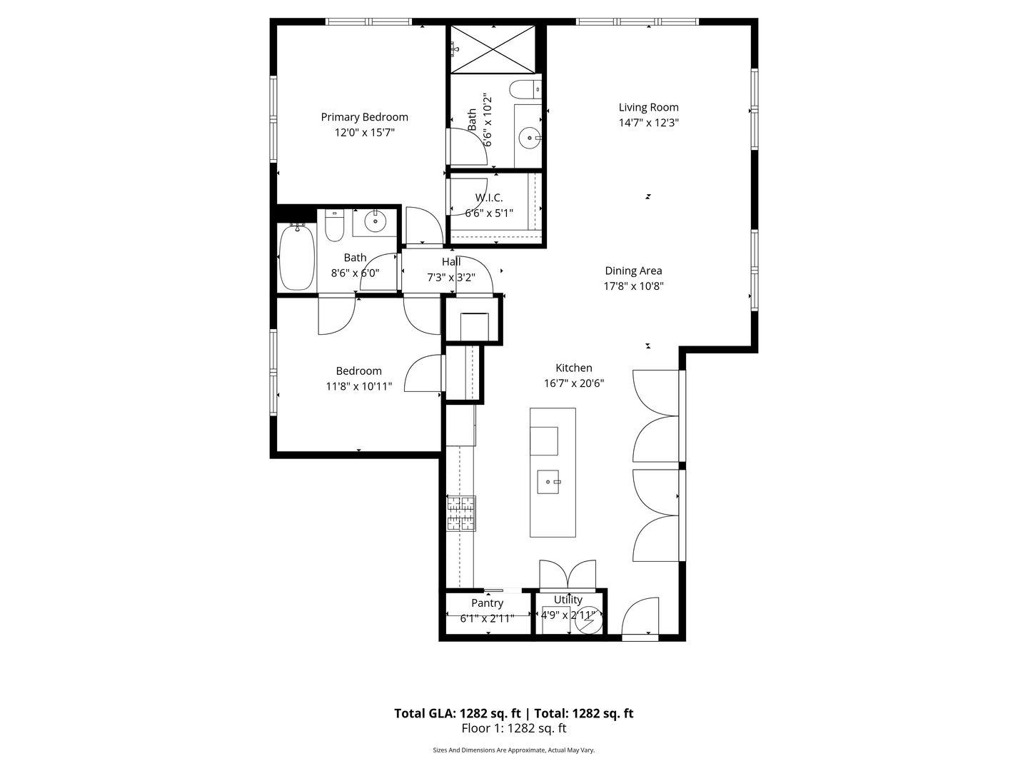 • Spacious kitchen with an island, ample cabinet storage, and stainless steel appliances
