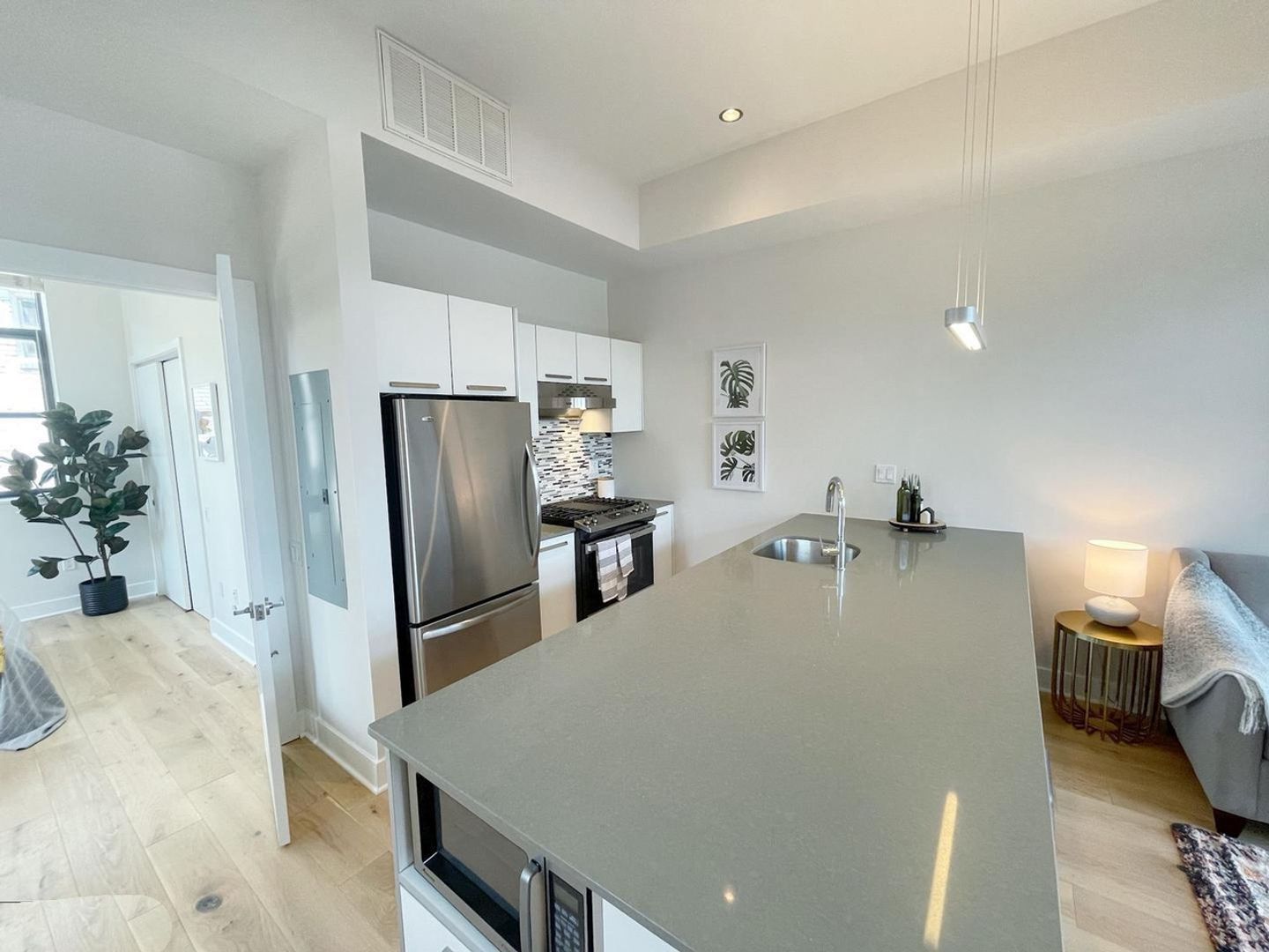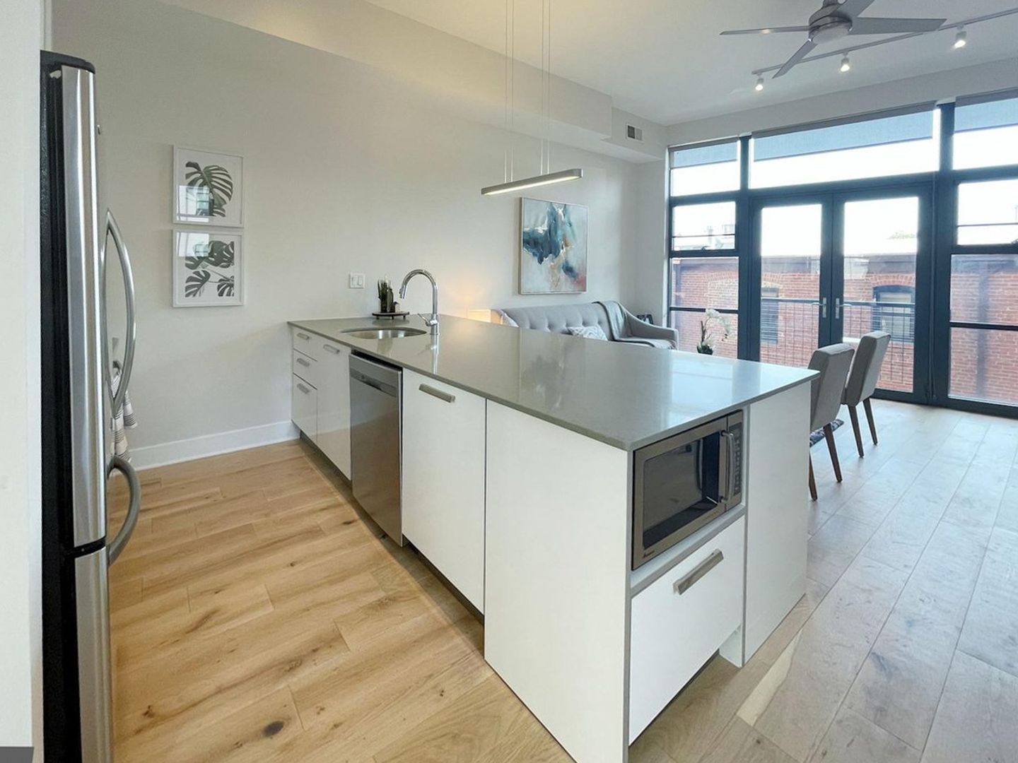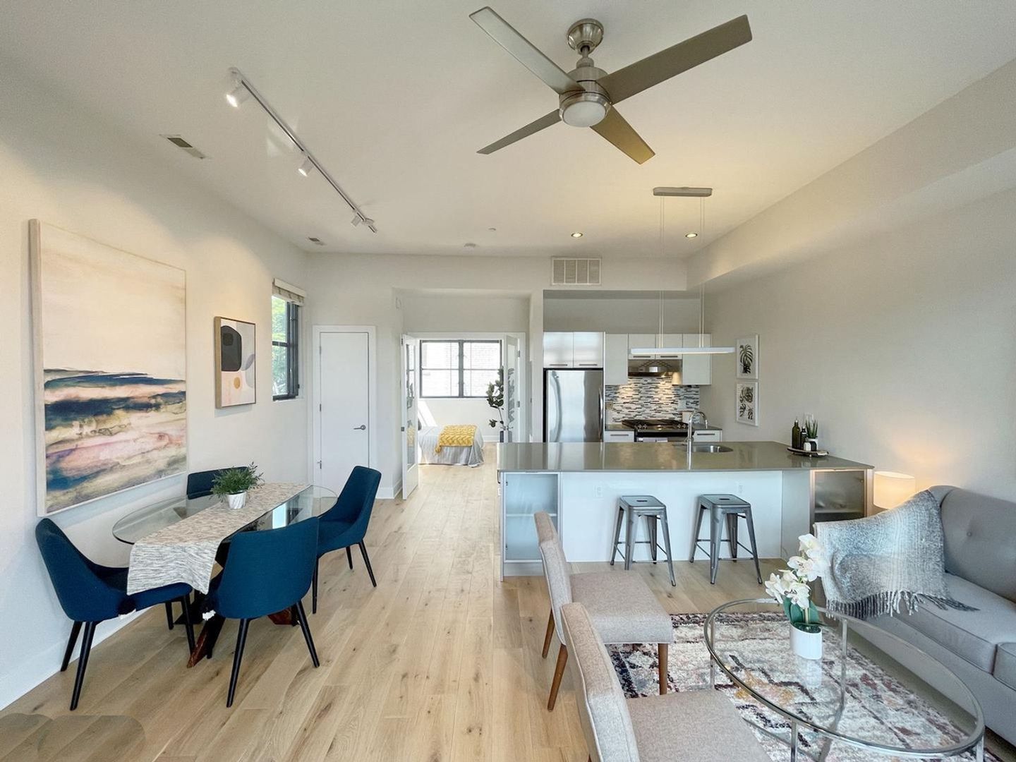This unit has a thoughtfully planned layout with an airy and open living & dining space, perfect for entertaining. The kitchen includes high-end stainless steel appliances with updated finishes and large breakfast bar for easy, casual dining. The bedroom has ample closet/storage space and large, windows that saturate the space with natural light. The home is rounded out with a serene bathroom, front loading washer/dryer, and one off-street parking spot!